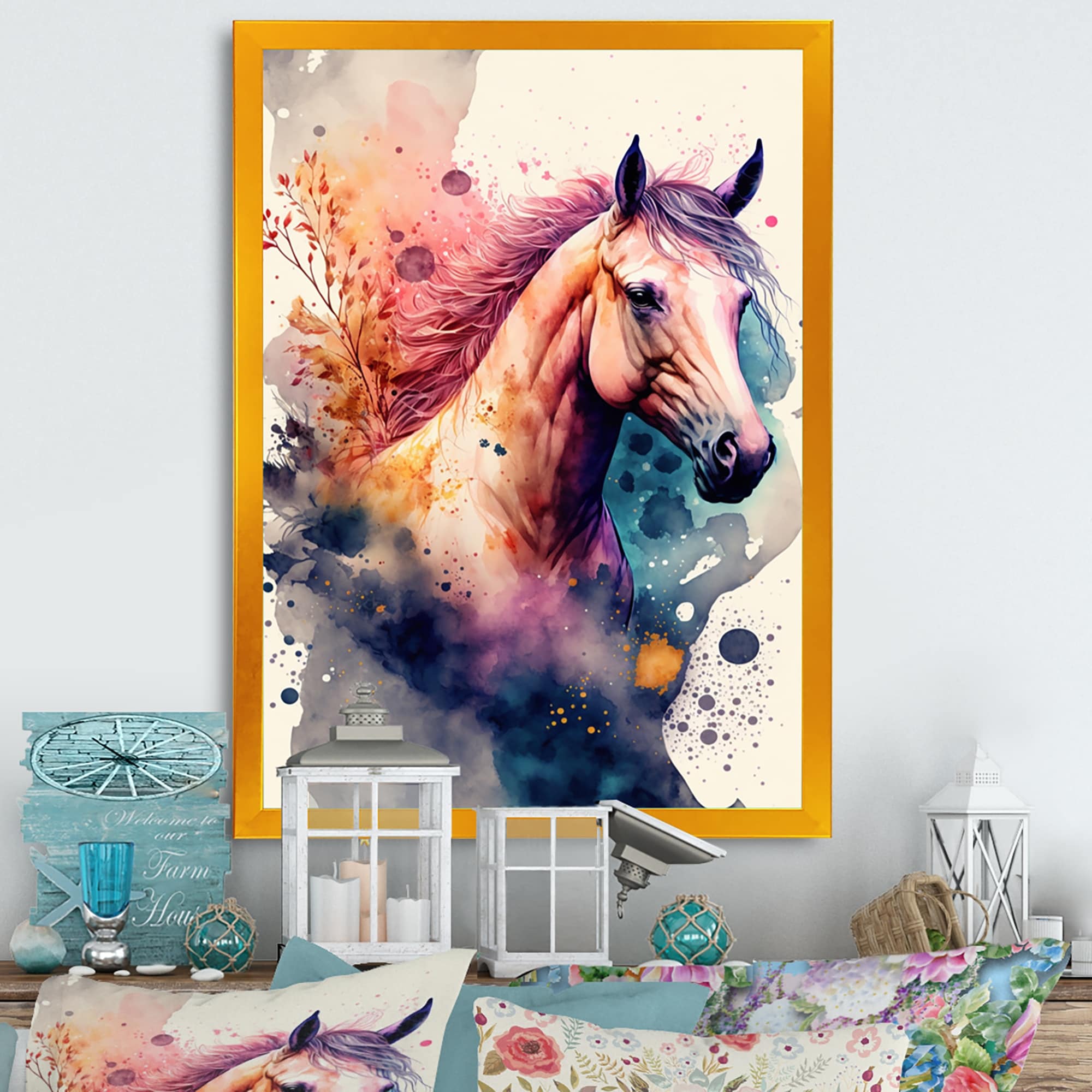 Designart "Cute Horse Floral Art II" Animals Framed Art Print