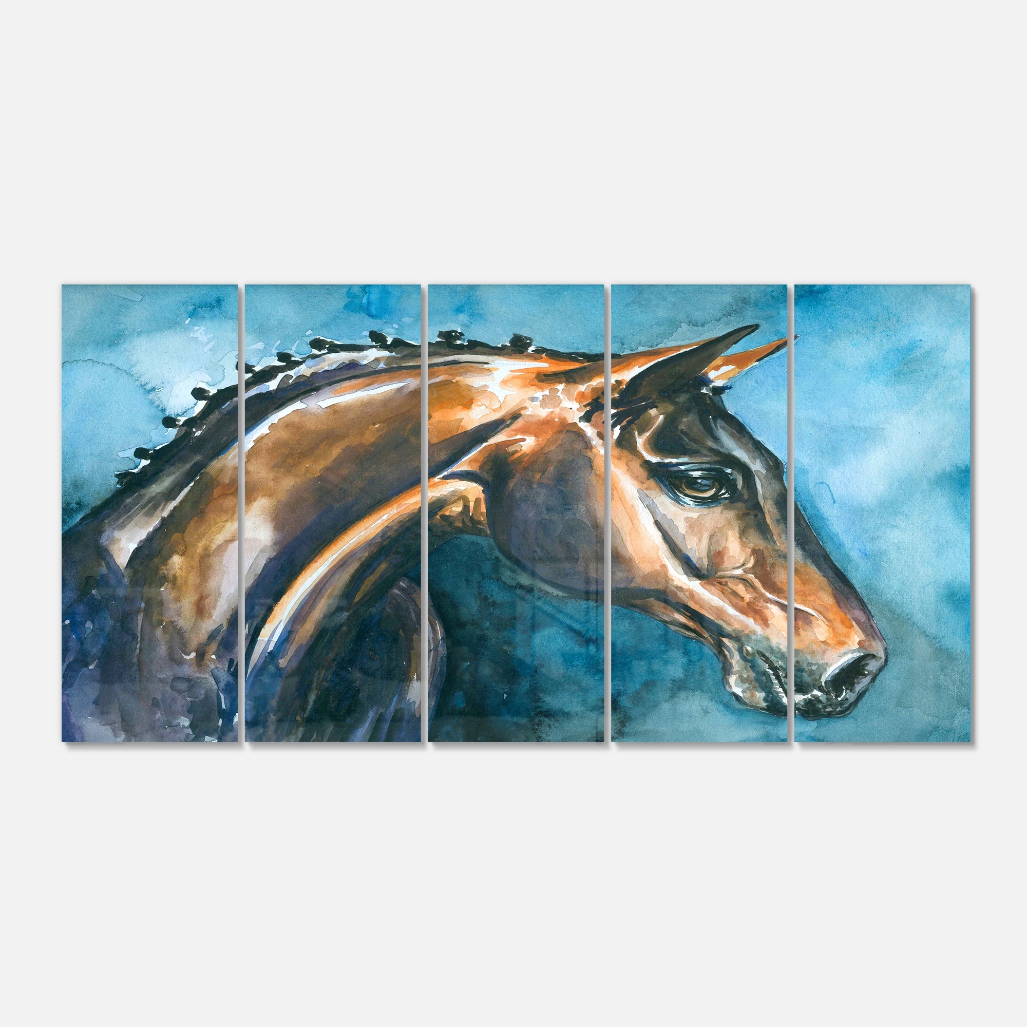 Designart 'Brown Horse on Blue Watercolor' Animal Metal Wall Art