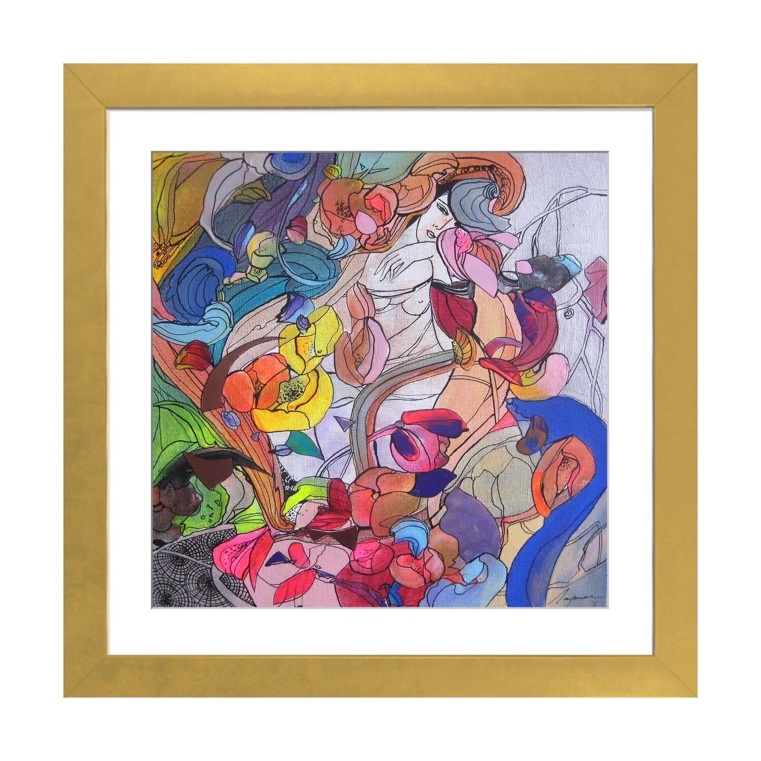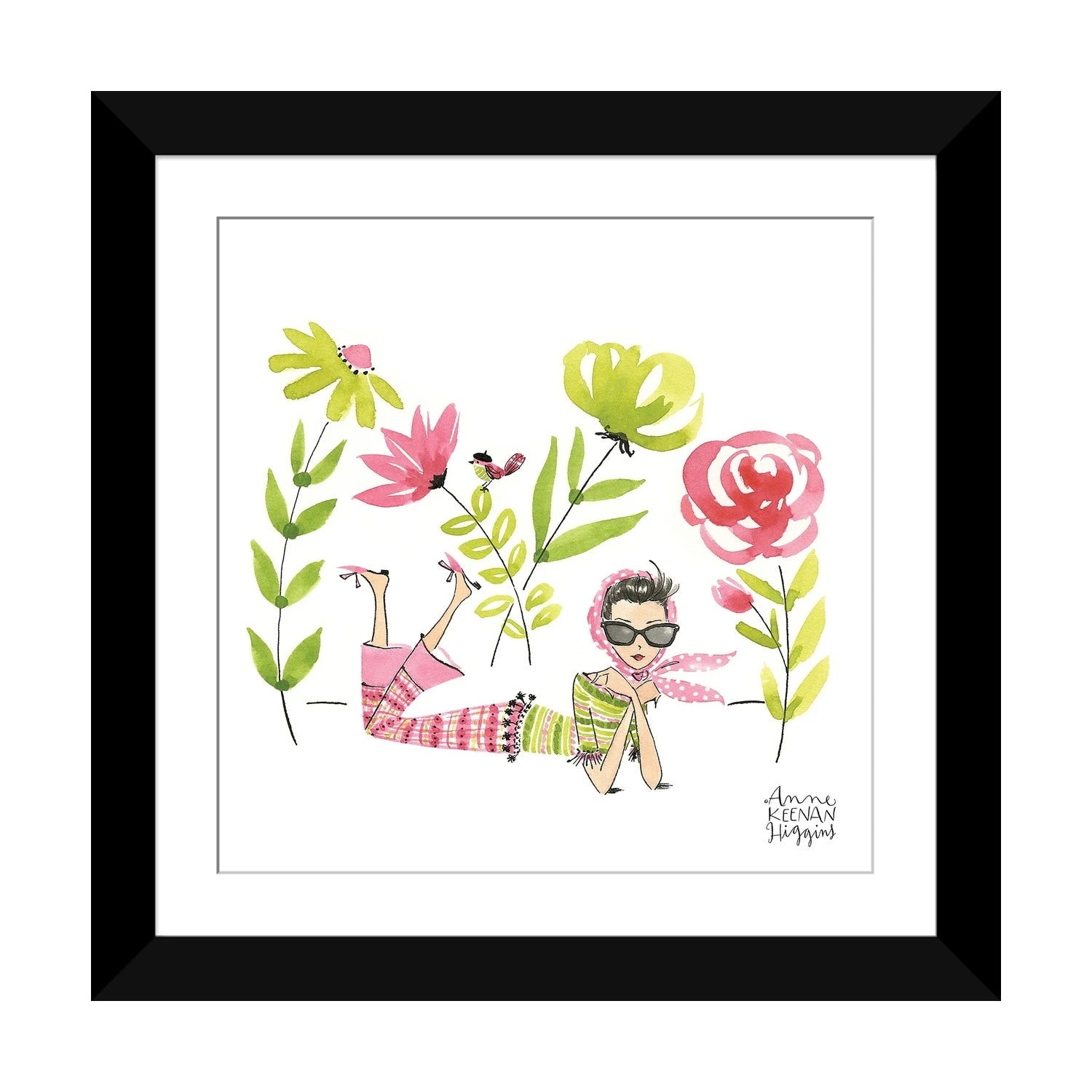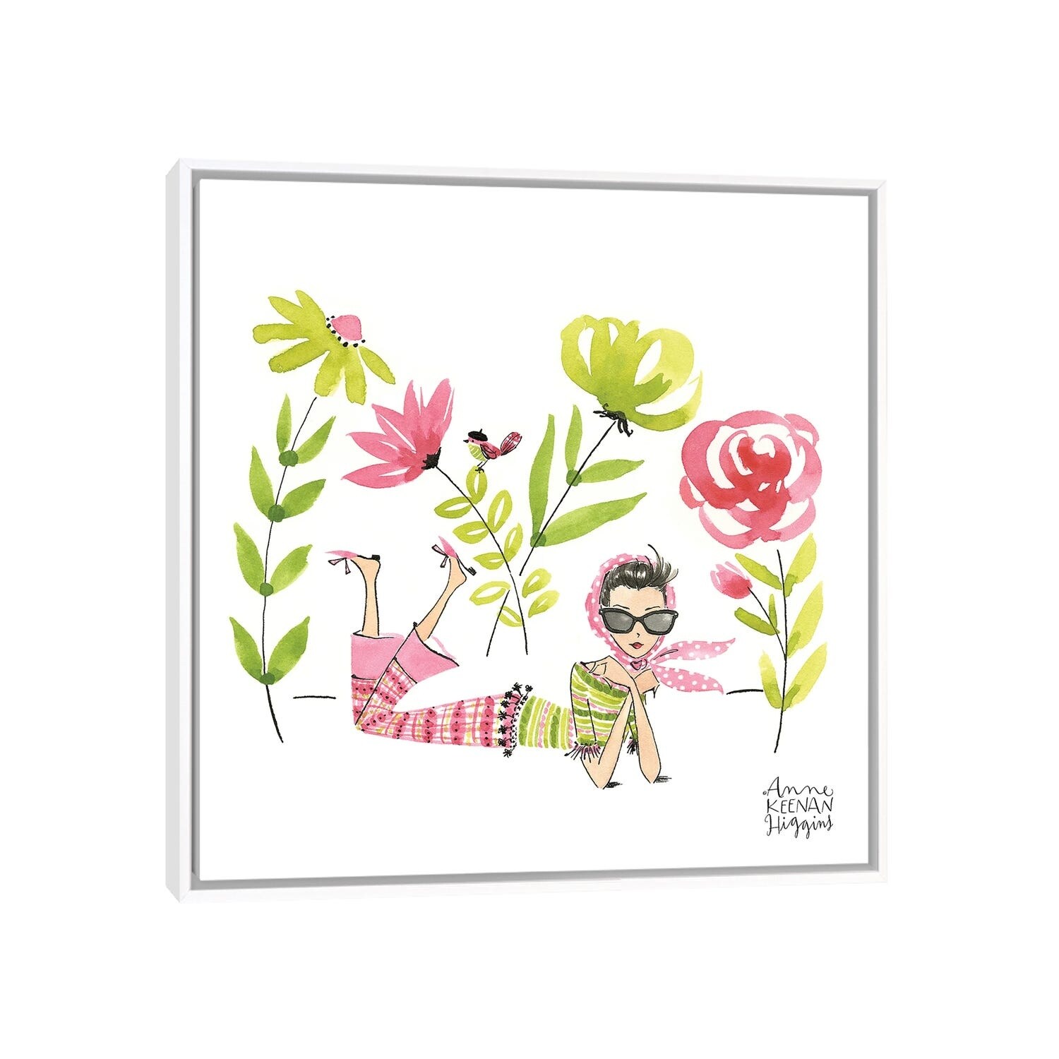 iCanvas "Woman Lying in Big Flowers" by Anne Keenan Higgins Framed Canvas Print