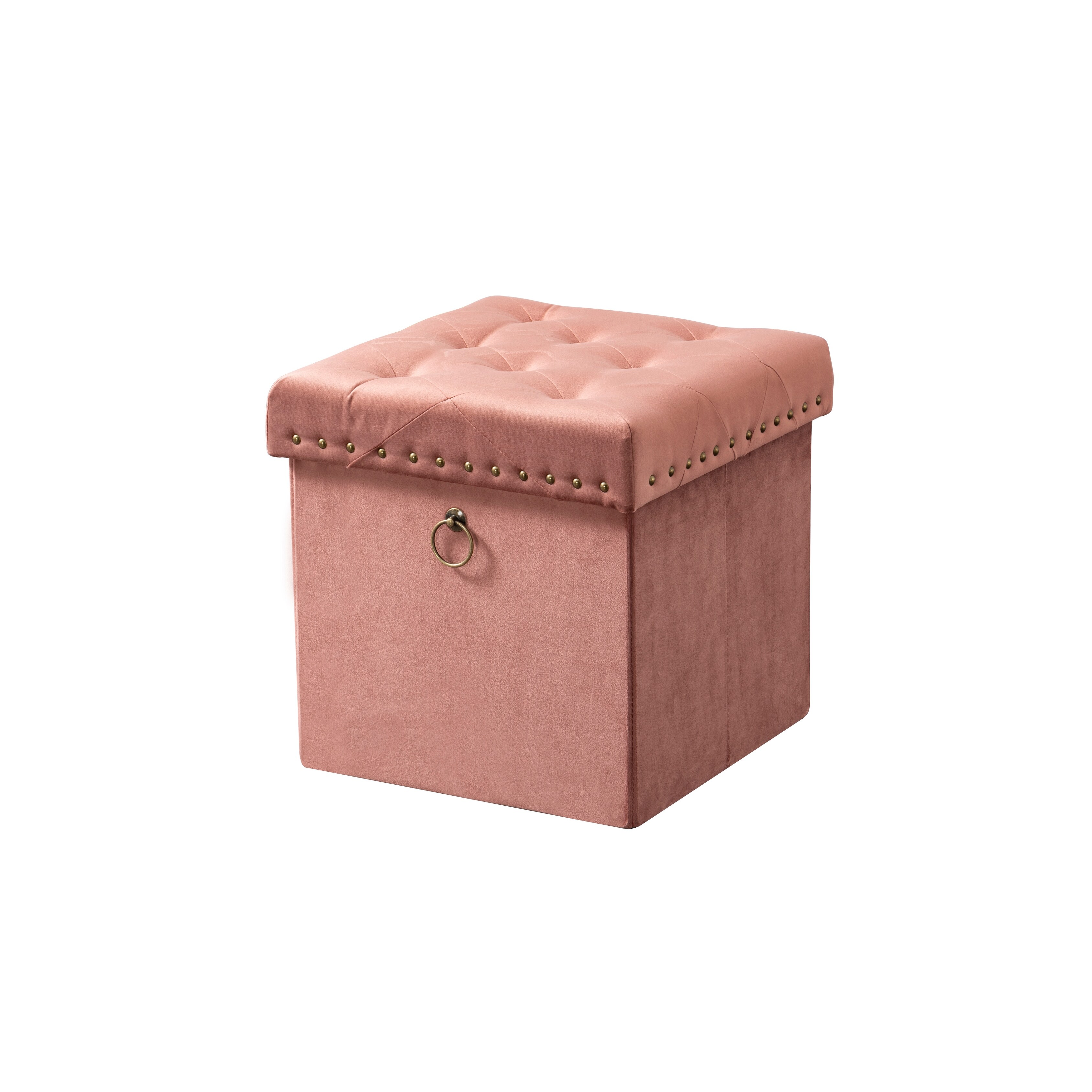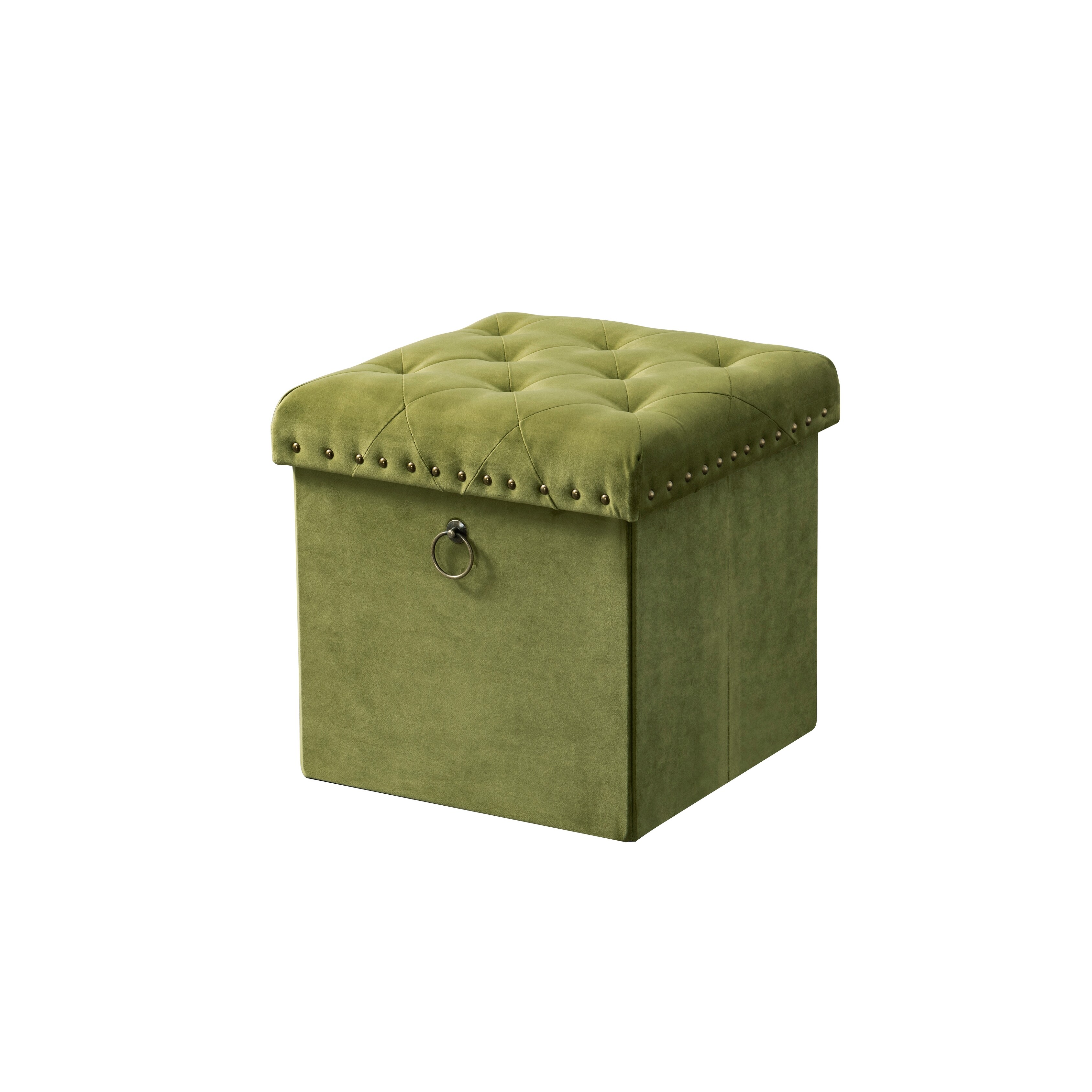 Chic Home Cassy Storage Ottoman Velvet Upholstered Antique Brass