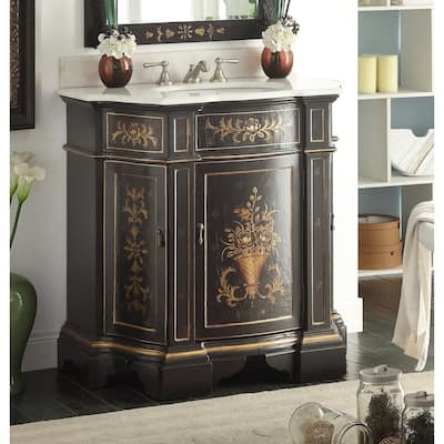 35" Benton Collection Crossfield Antique Style Black Bathroom Vanity
