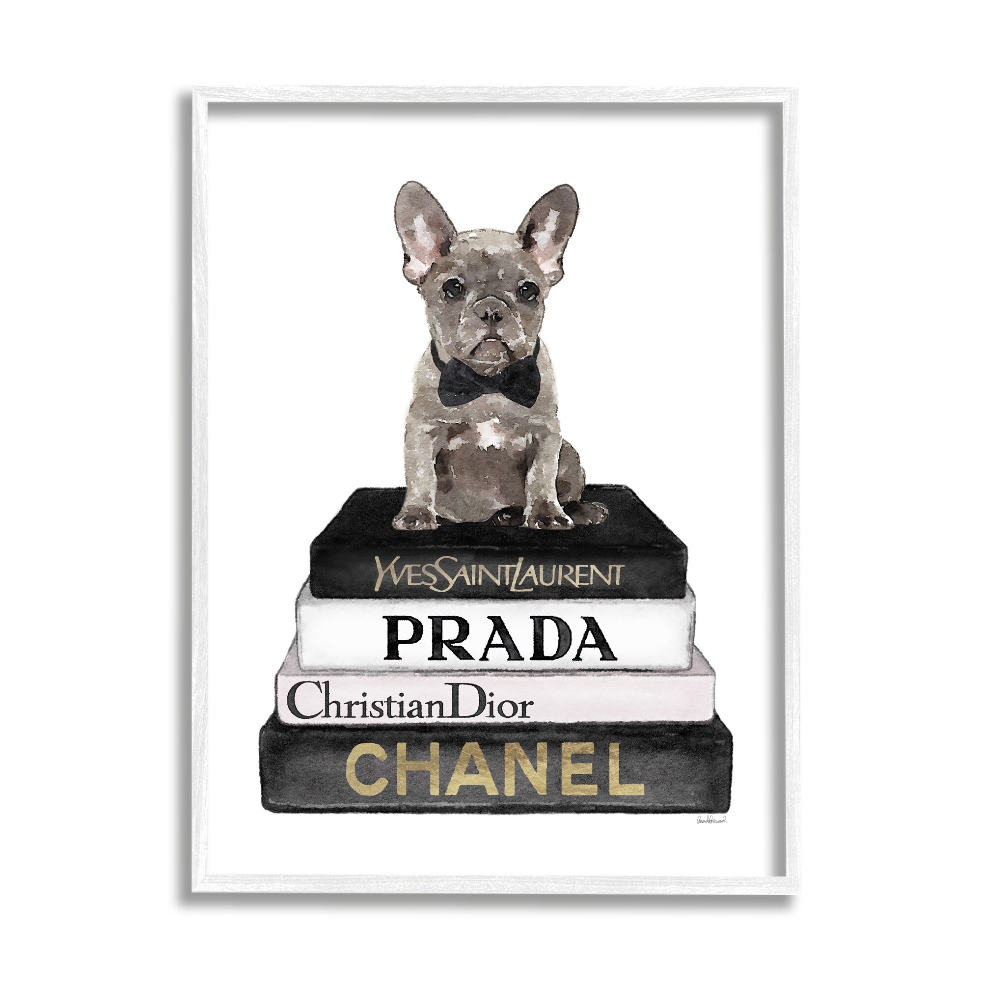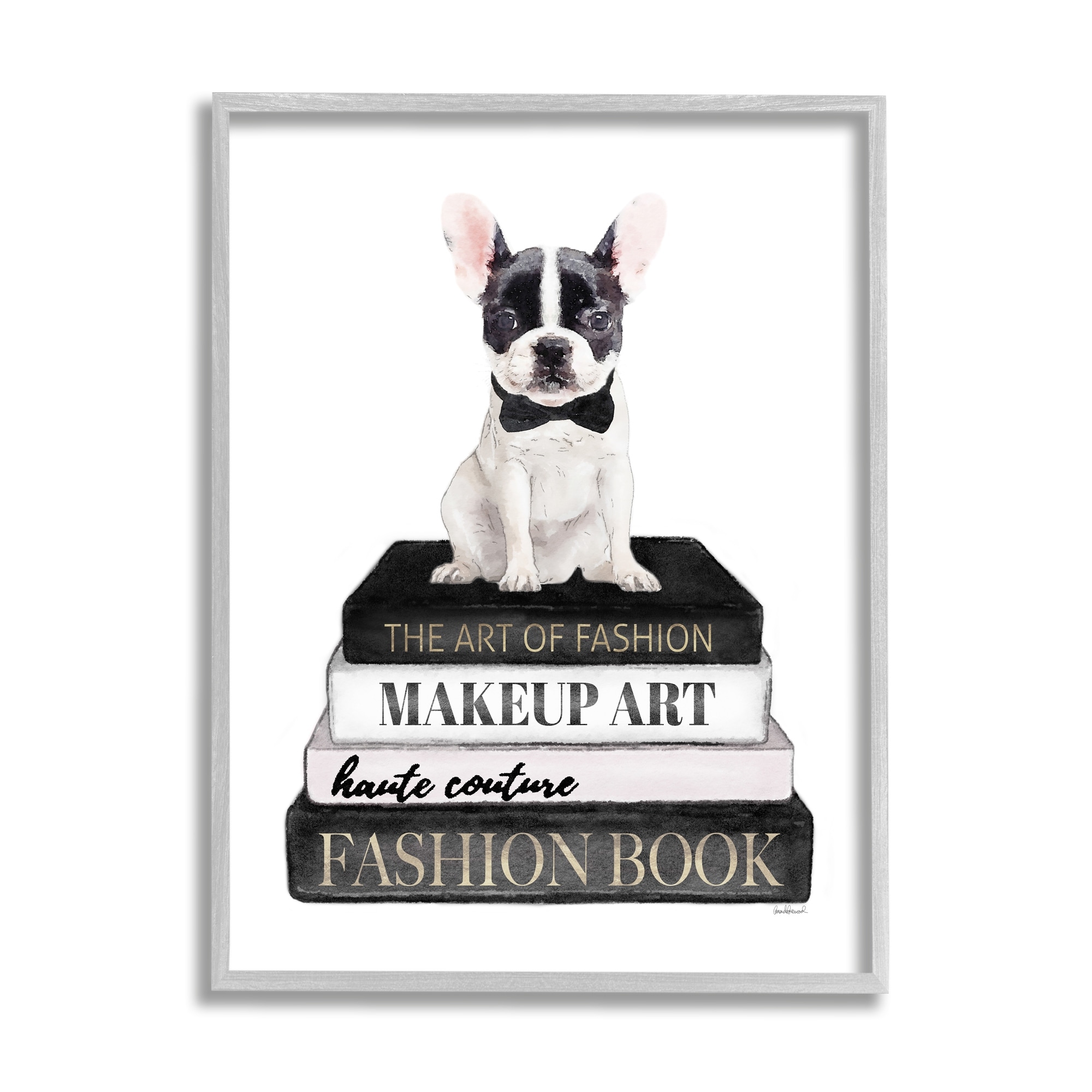 Stupell French Bulldog Pet Fashion Apparel Bookstack Framed Wall Art, Design by Amanda Greenwood - White