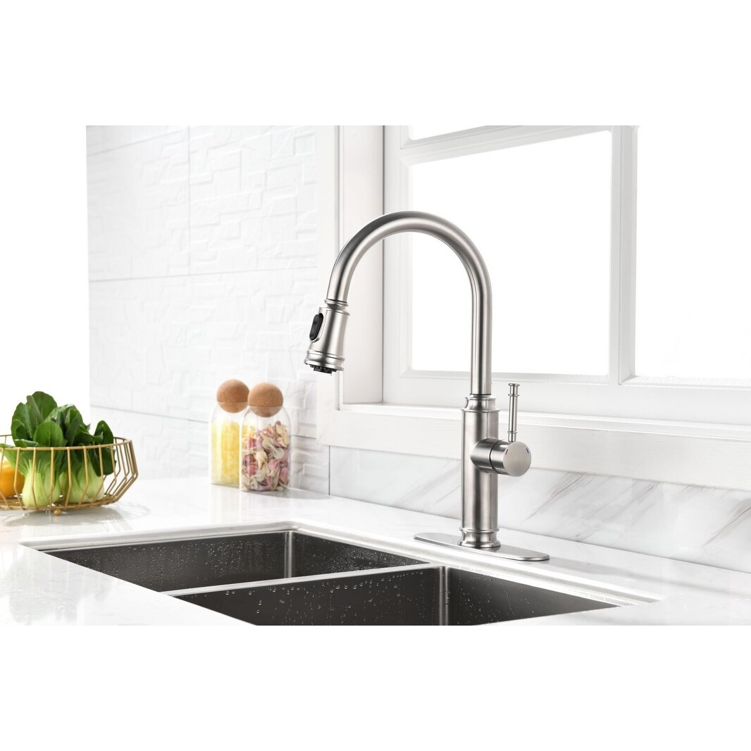 Single-Hole High-Arc Pull Down Kitchen Faucet with Accessories