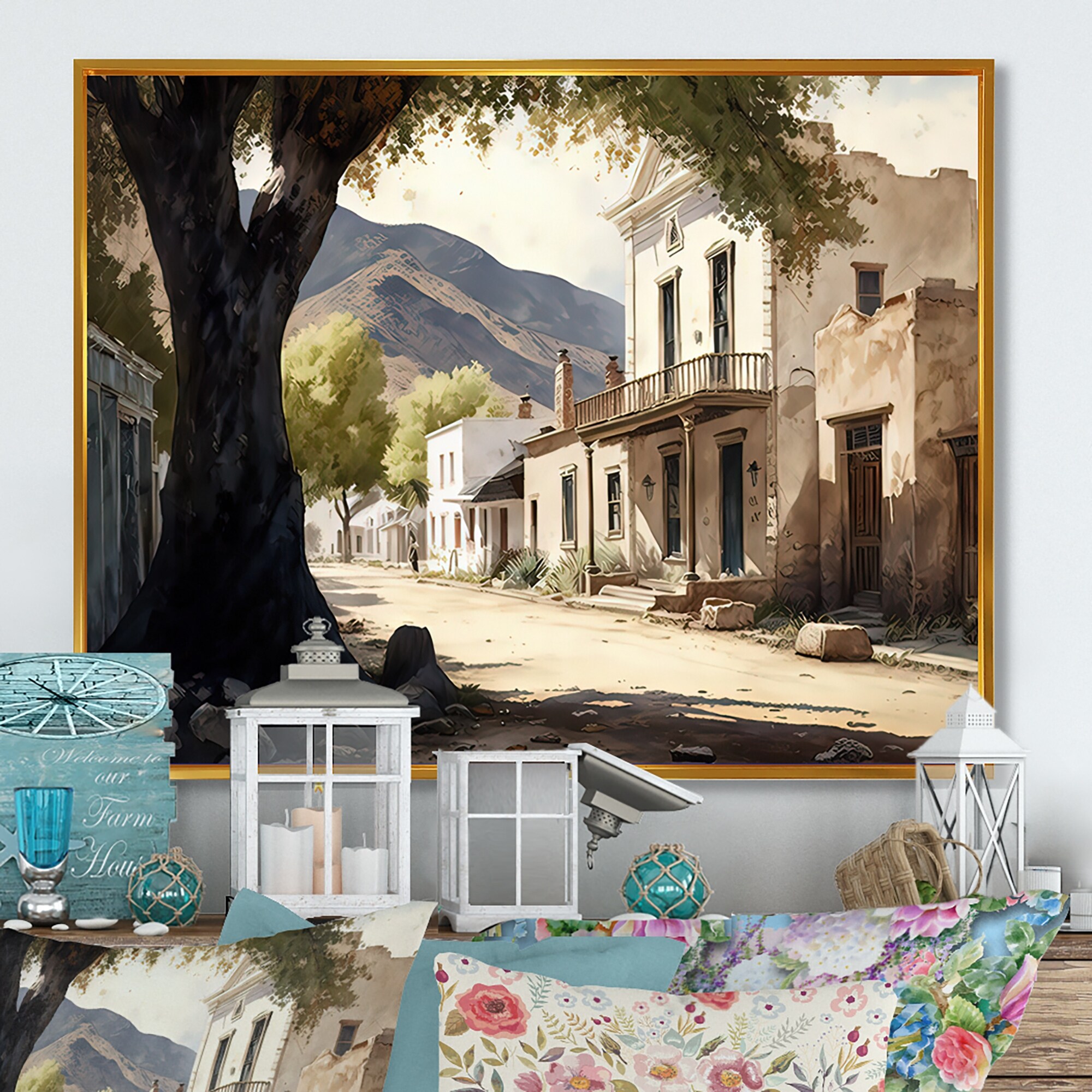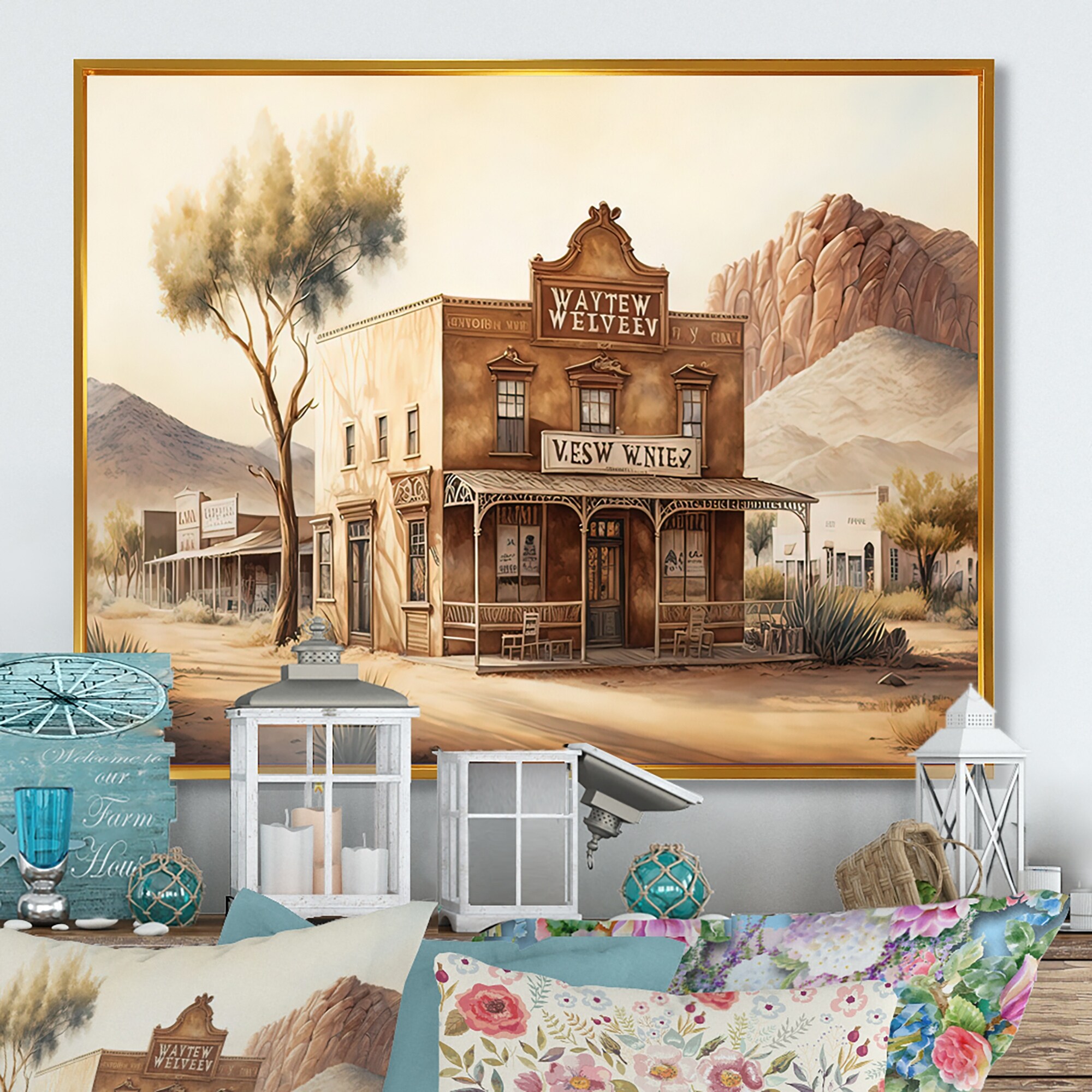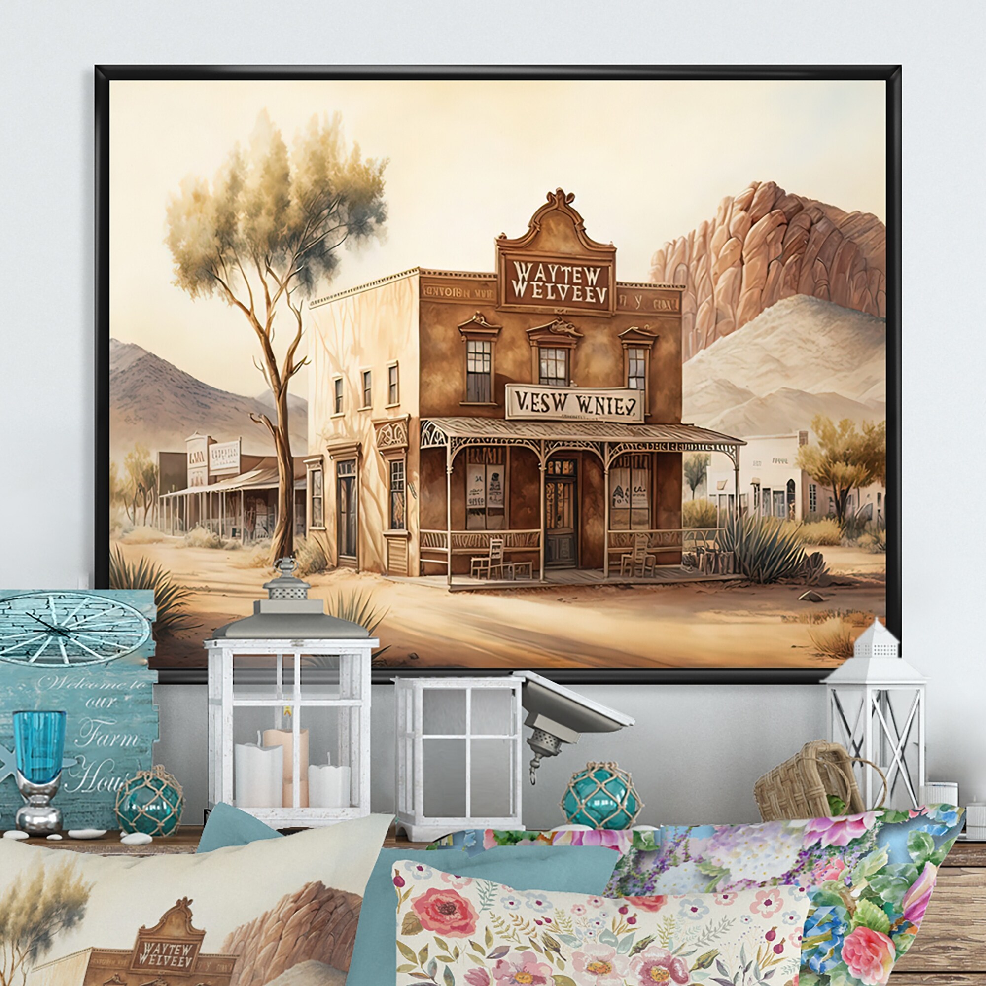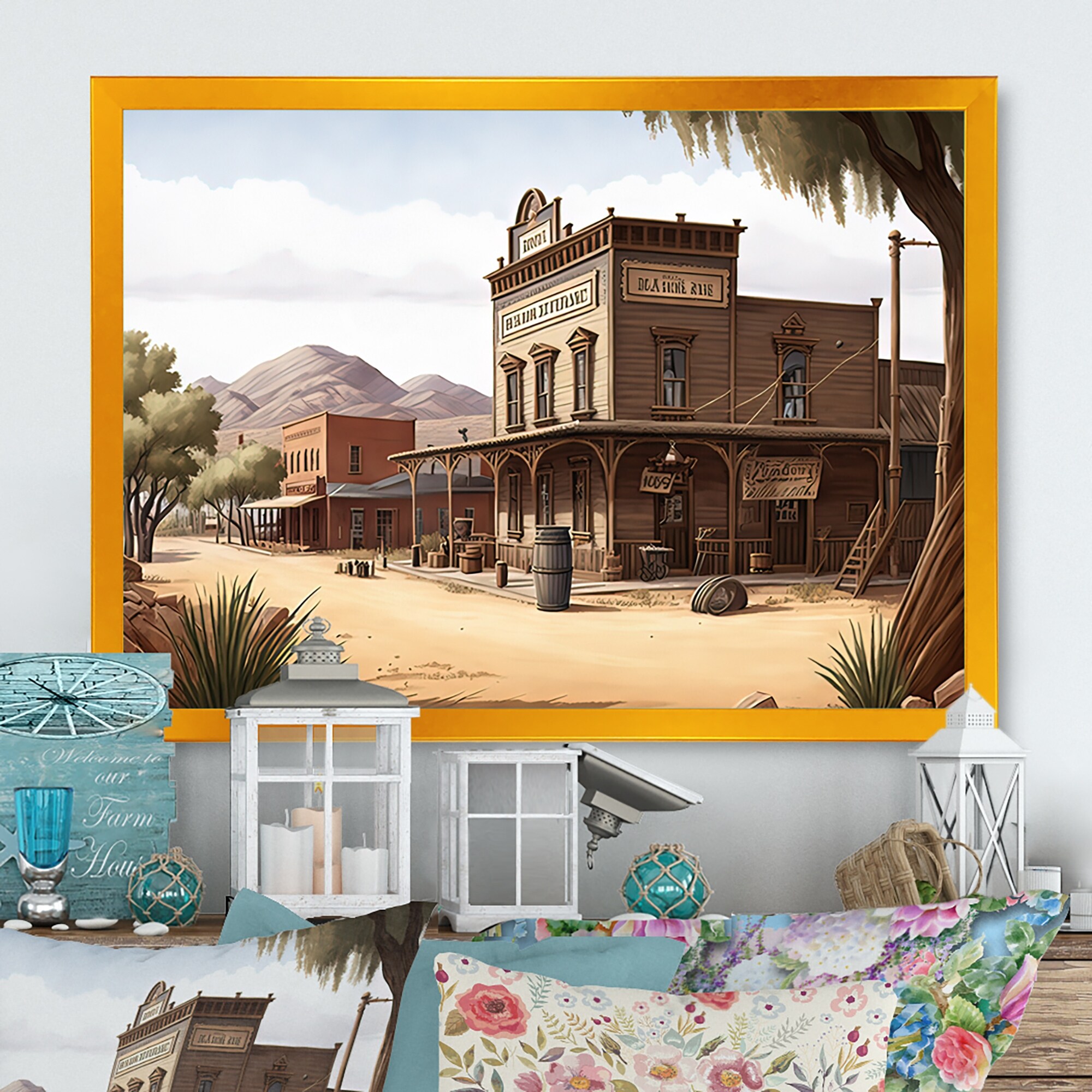 Designart "Arizona Wild West Town IV" Southwestern Framed Canvas Art Print