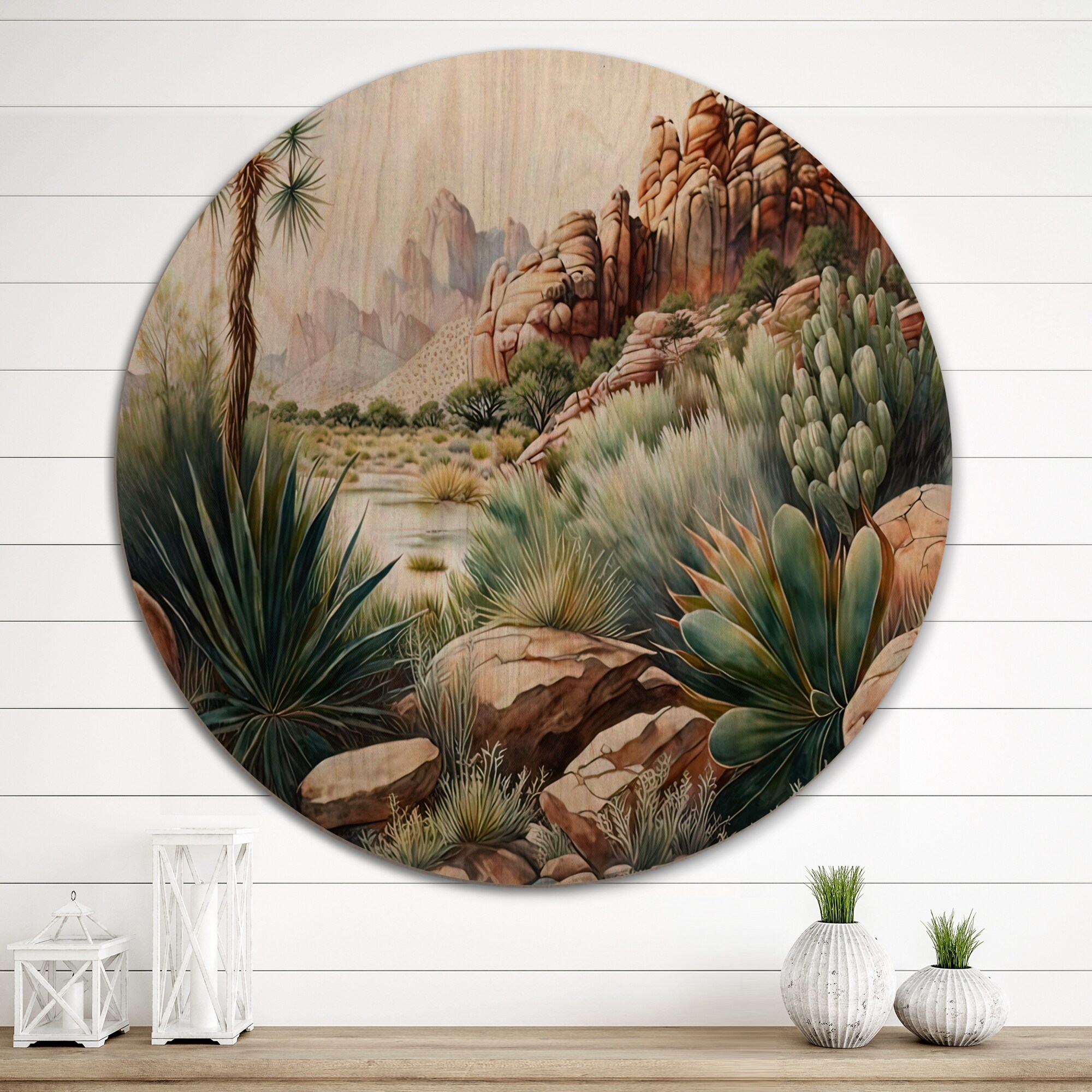 Designart "Arizona Desert Cactus II" Modern Wood Wall Art Décor - Natural Pine Wood