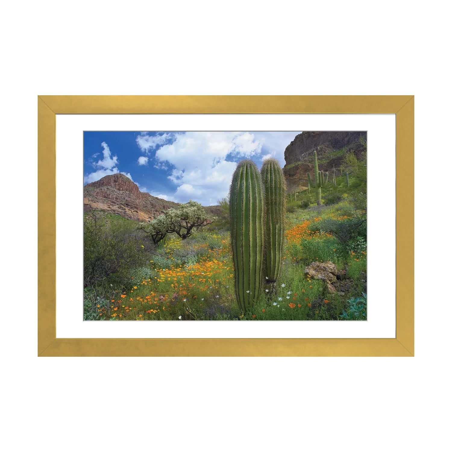 iCanvas "Saguaro Amid Flowering Lupine, Organ Pipe Cactus National Monument,Arizona And Desert Golden Poppies" by Tim Fitzharris