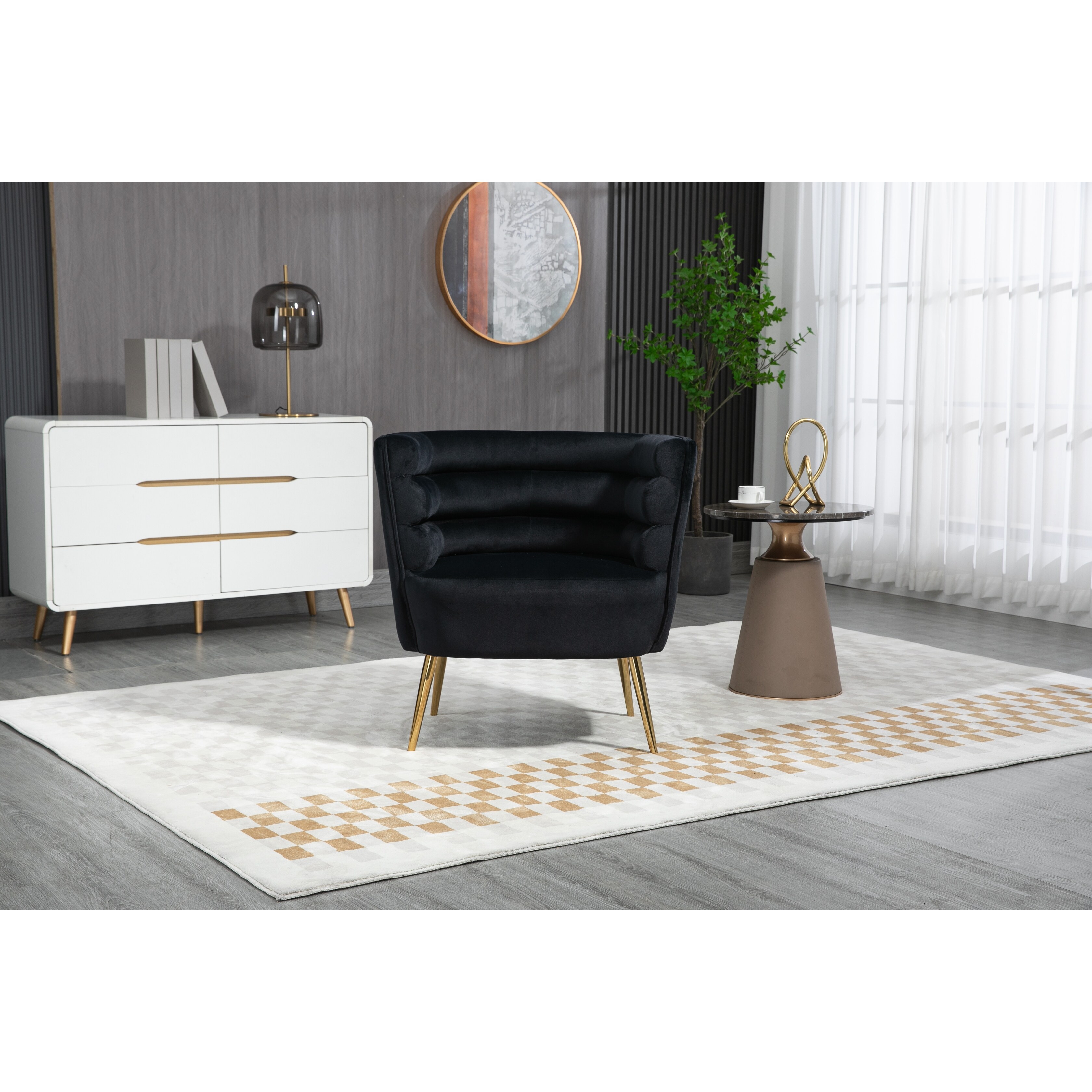 Modern Velvet Upholstered Accent Chair, Tufted Arm Chairs with Metal Frame, Single Leisure Chairs for Living Room Bedroom