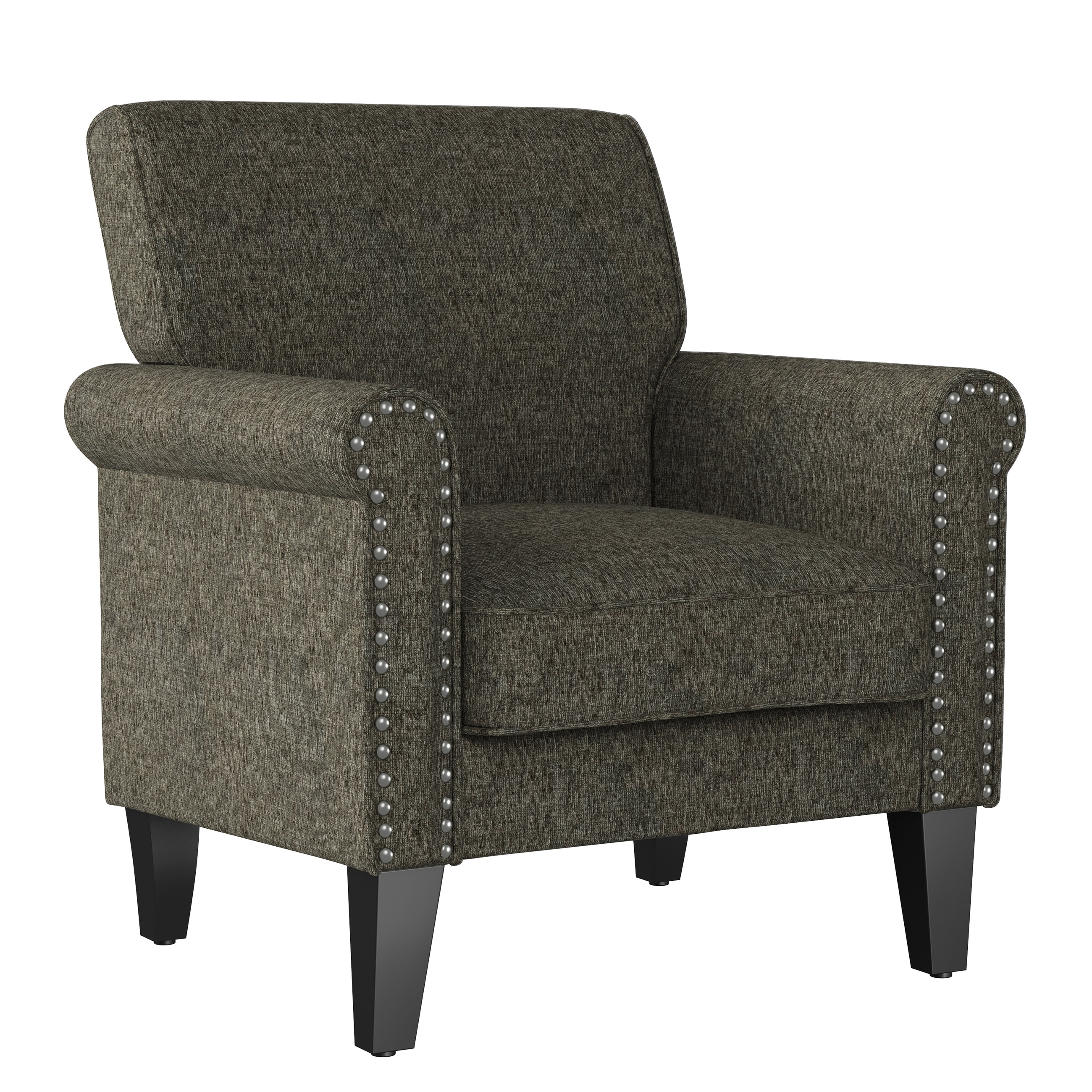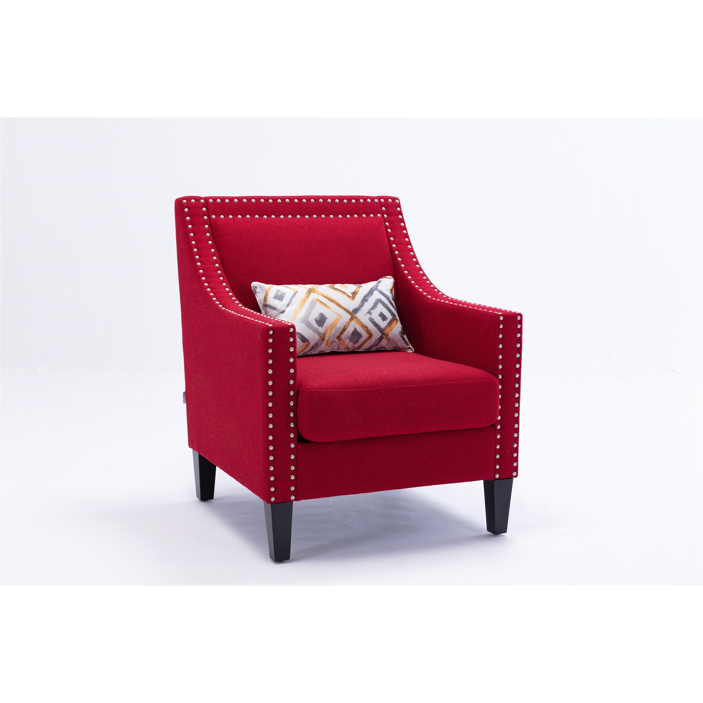 Linen Accent Arm Chair for Living Room with Nailheads and Wood Legs