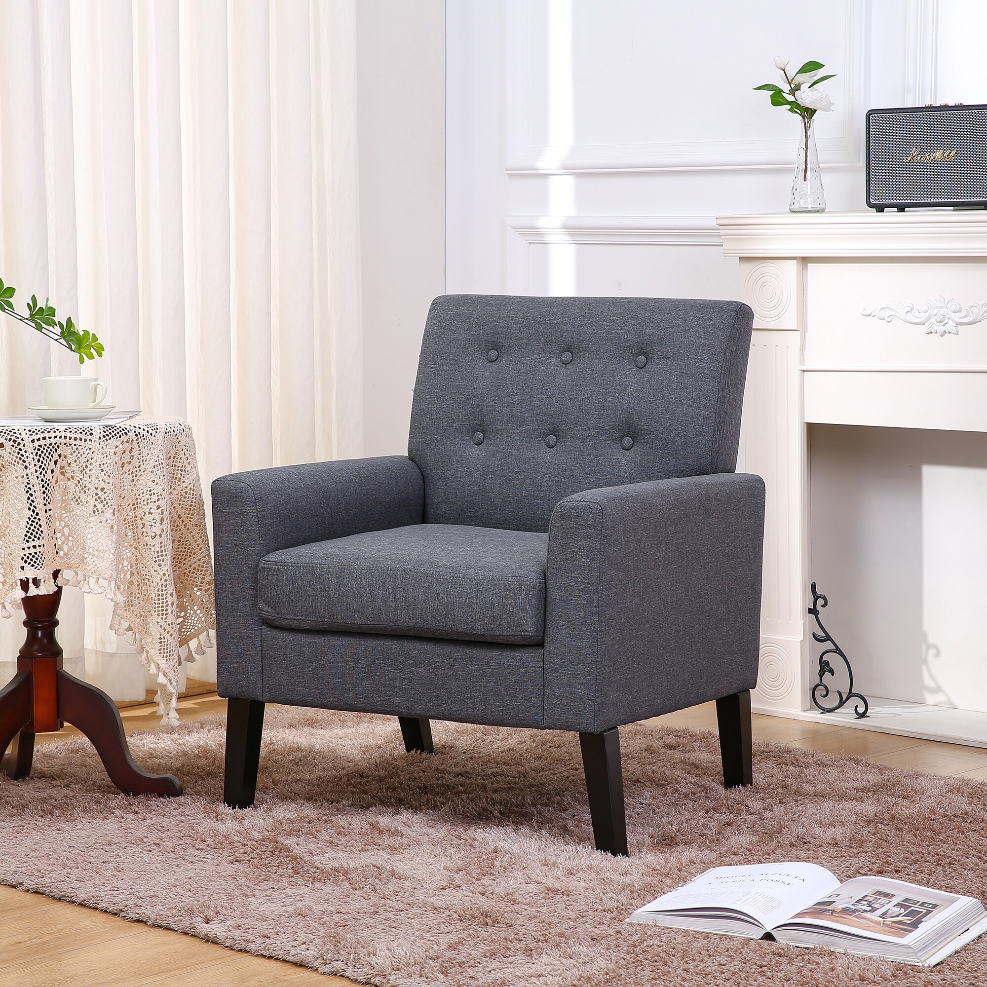 Button Tufted Accent Chairs Upholstered Arm Chairs Sofa, Grey