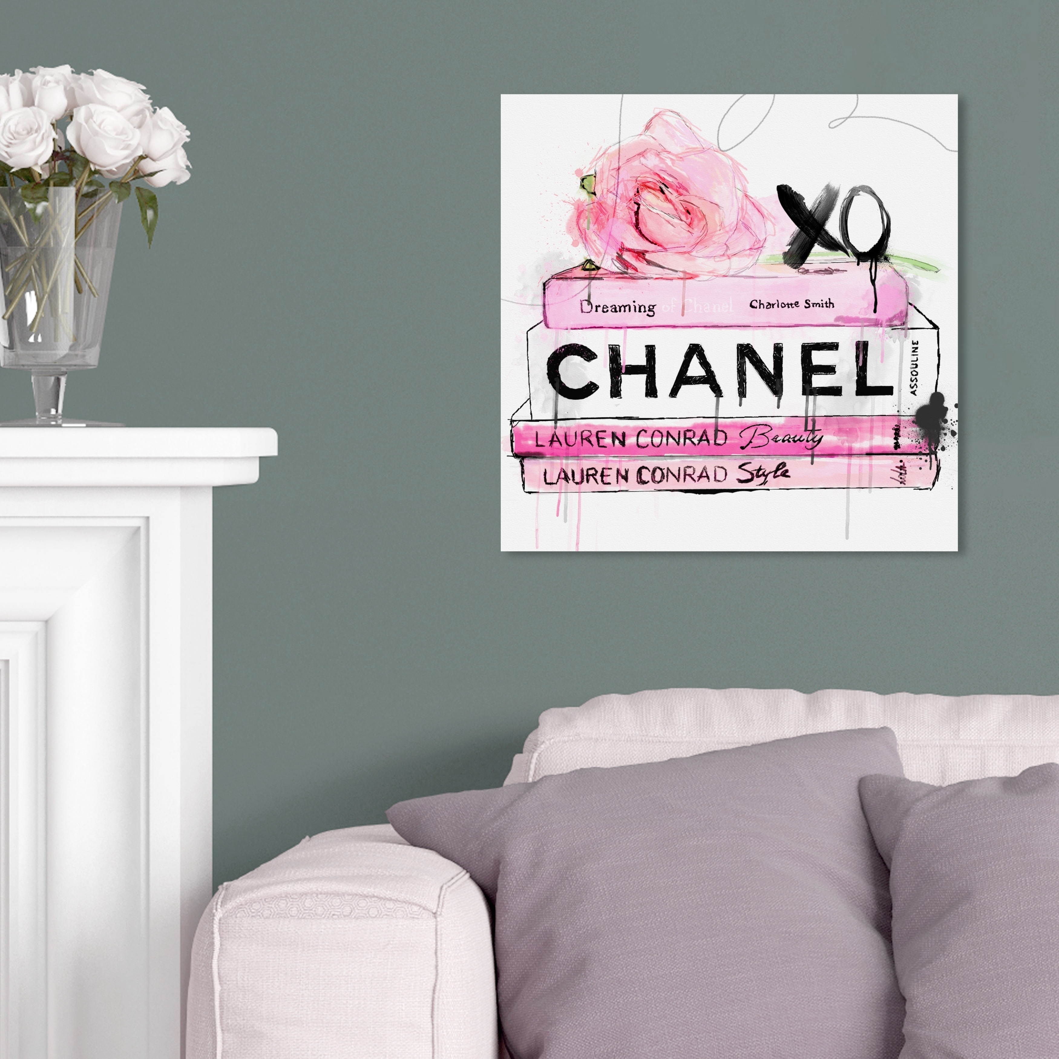 Oliver Gal 'Books and Floral Glam' Fashion and Glam Wall Art Canvas Print Books - Pink, White