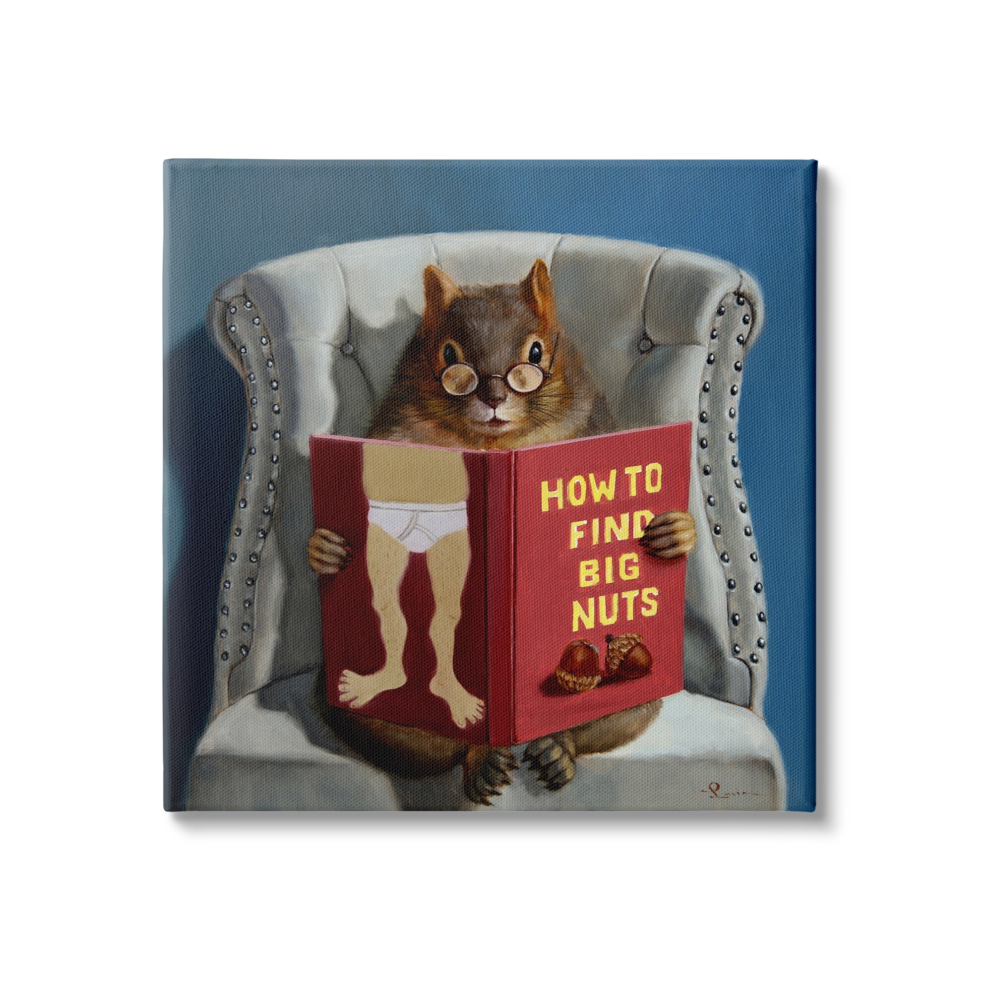Stupell Squirrel Reading Red Book on Chair Sassy Humor Canvas Wall Art