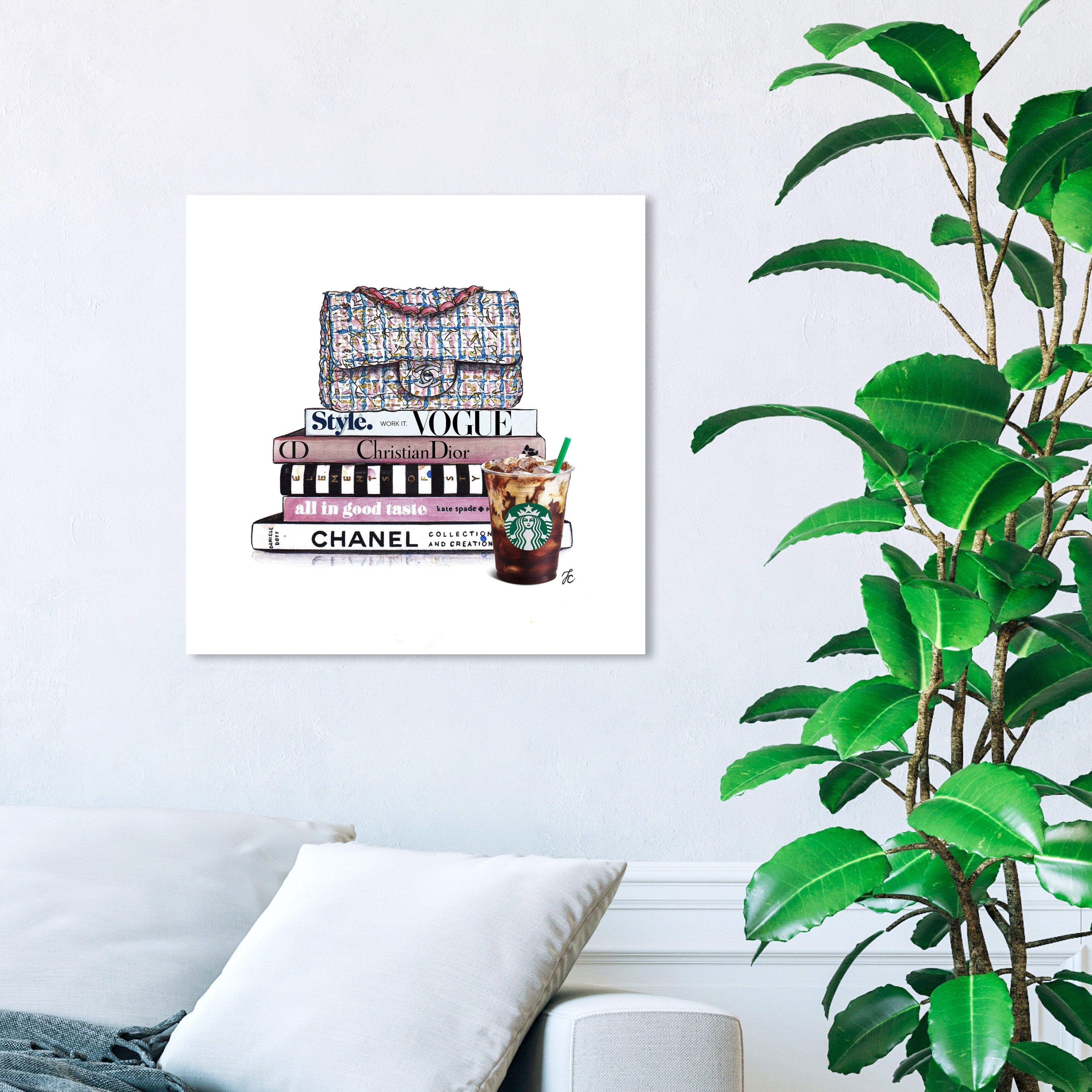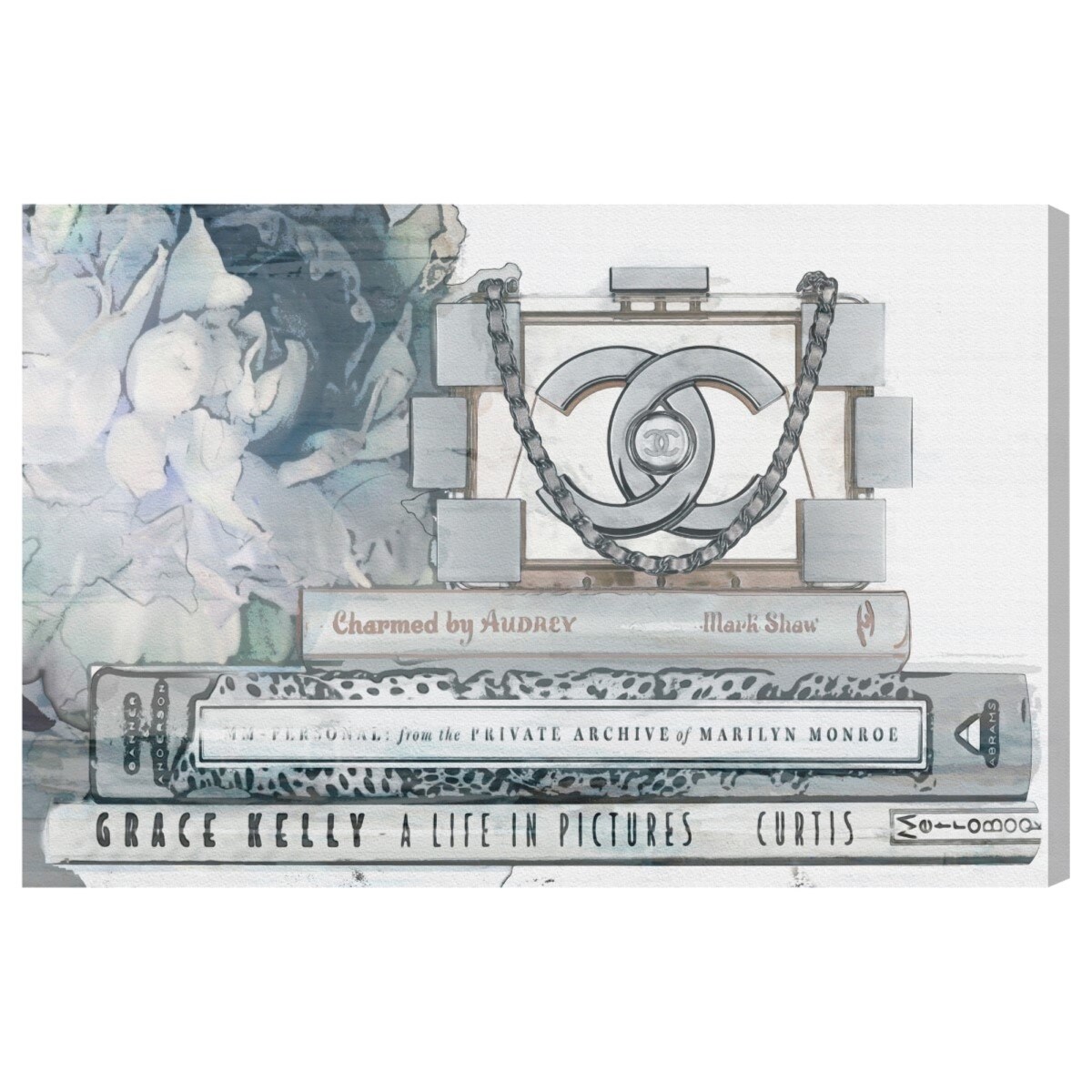 Kelly Gray, Glam Purse and Books Modern Blue Canvas Wall Art Print for Bedroom