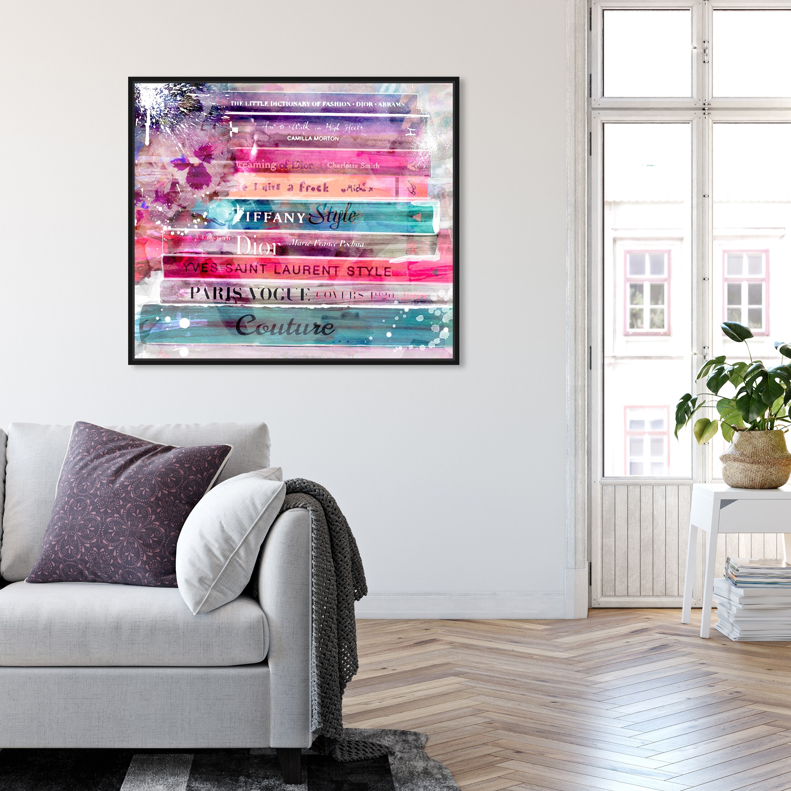Oliver Gal 'Fashion Splash Library' Fashion and Glam Wall Art Framed Canvas Print Books - Pink, Blue