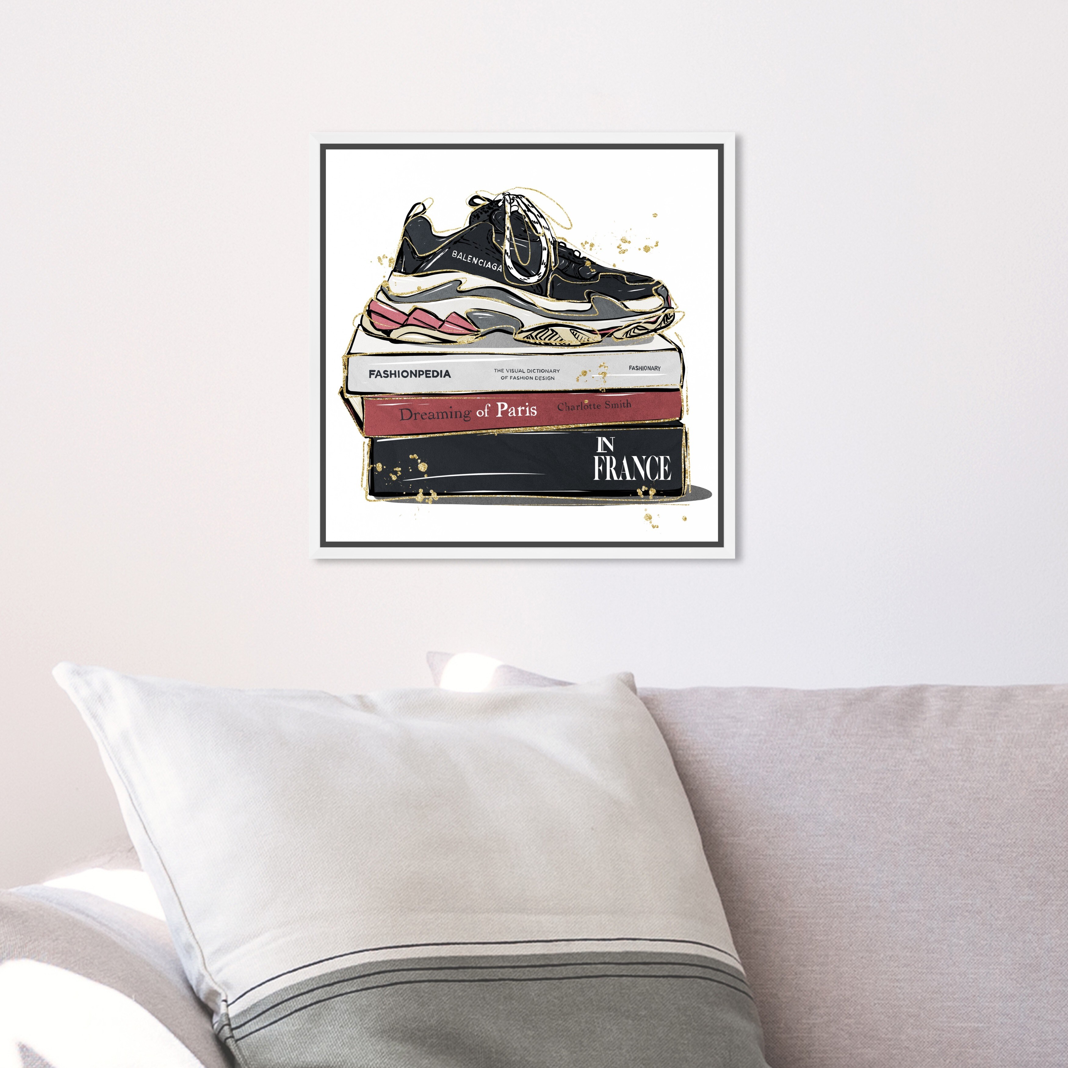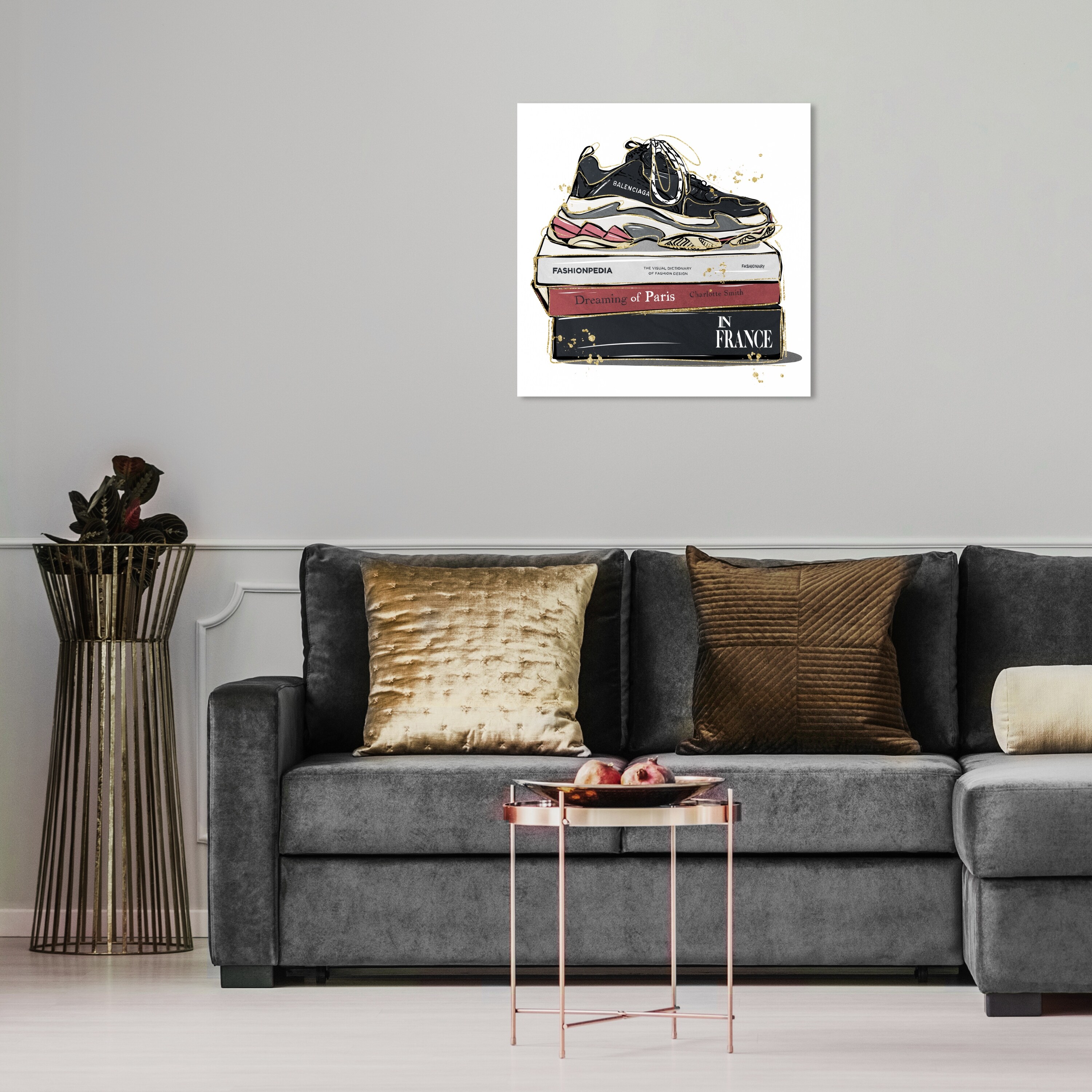 Oliver Gal 'Glam Book and Sneakers' Glam Black Wall Art Canvas Print
