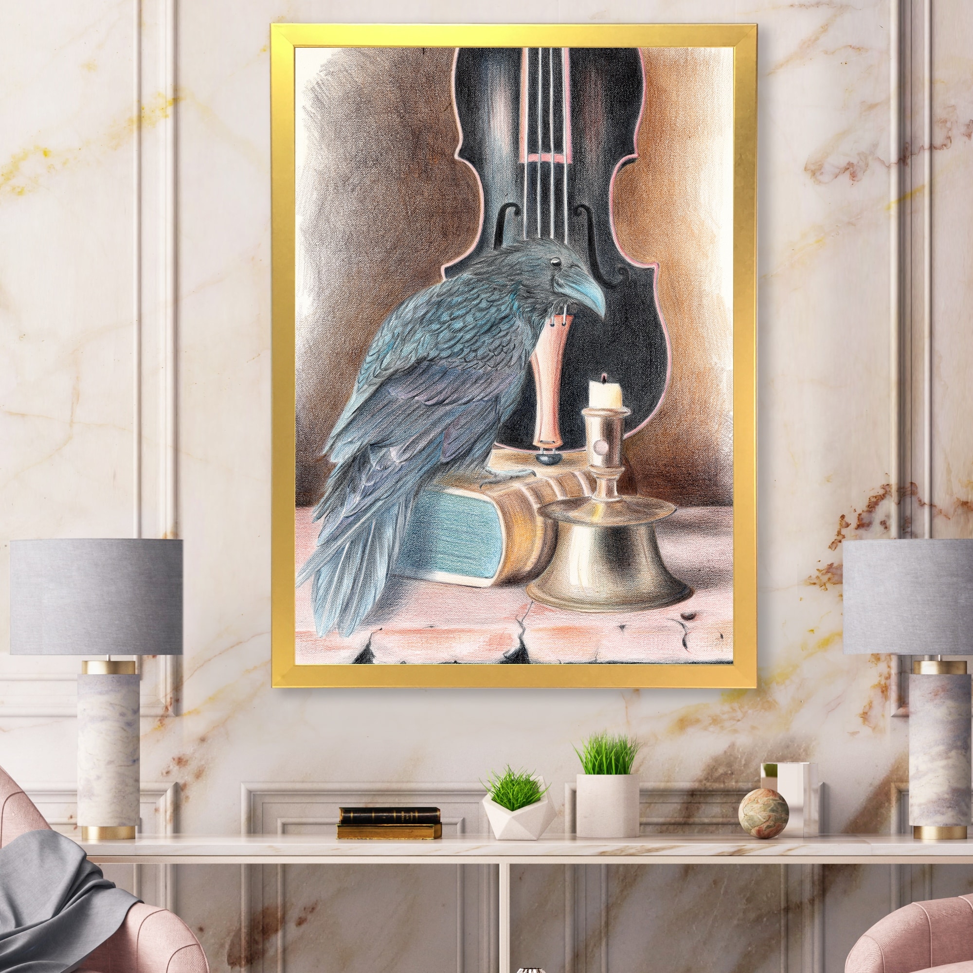 Designart "Raven On A Book With Violin" Bohemian & Eclectic Framed Art Print