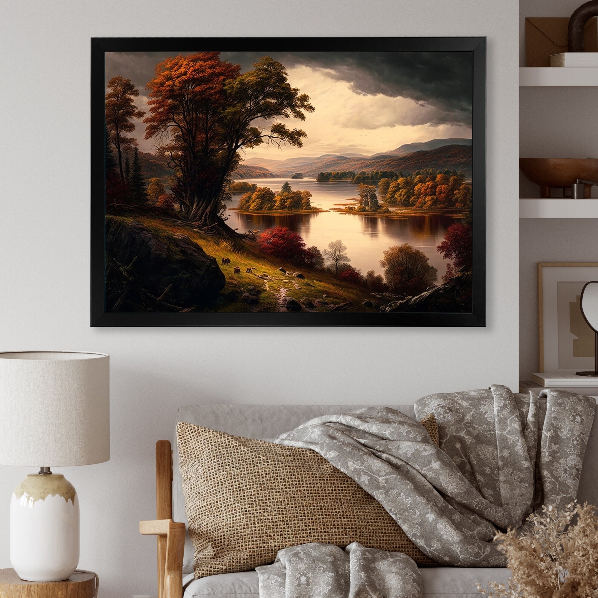 Designart "Lake Reflecting of Beautiful Autumn Mountains III" Landscape Mountains Lake Framed Wall Art Prints