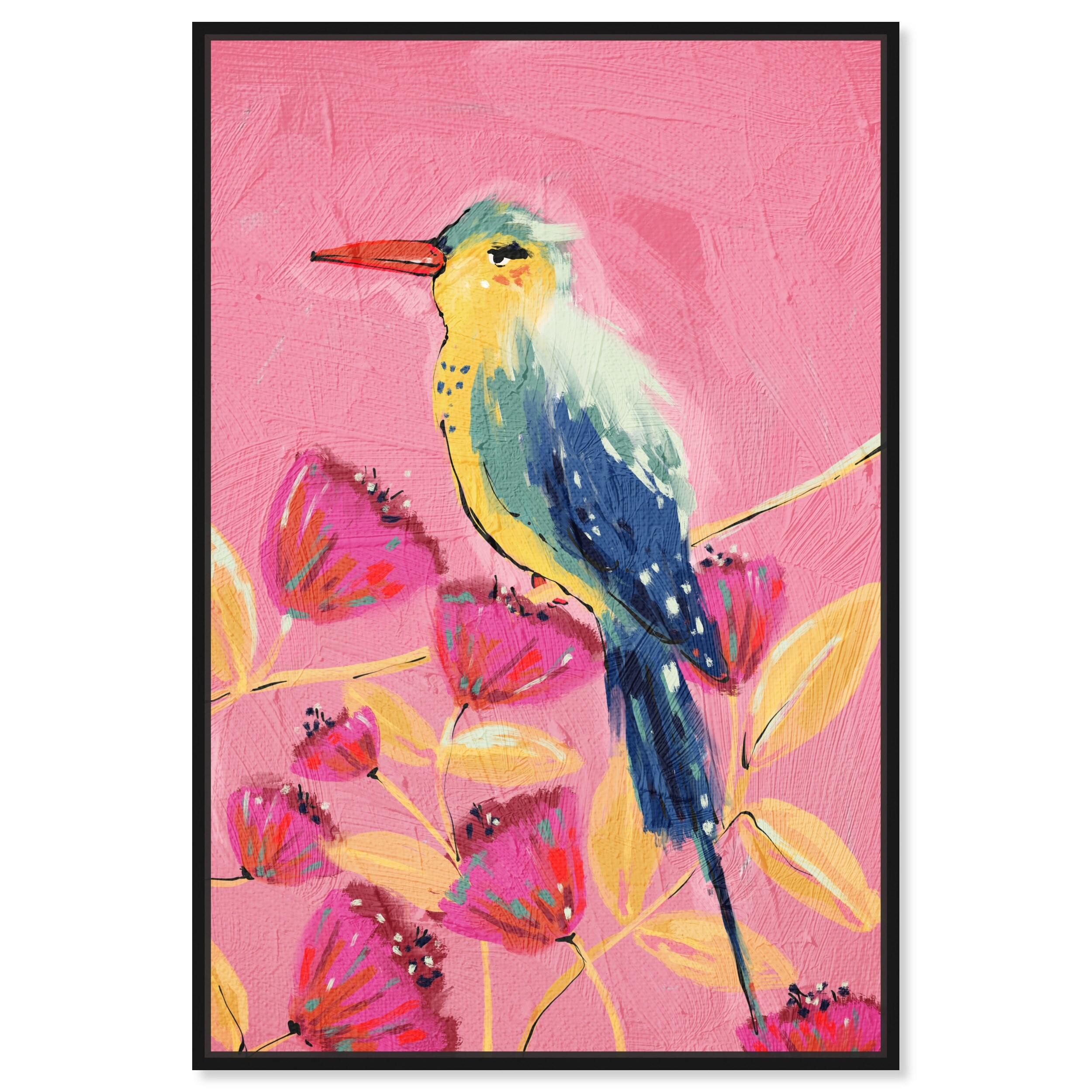 Oliver Gal 'Colorful Bird in A Garden' Framed Canvas Art Print