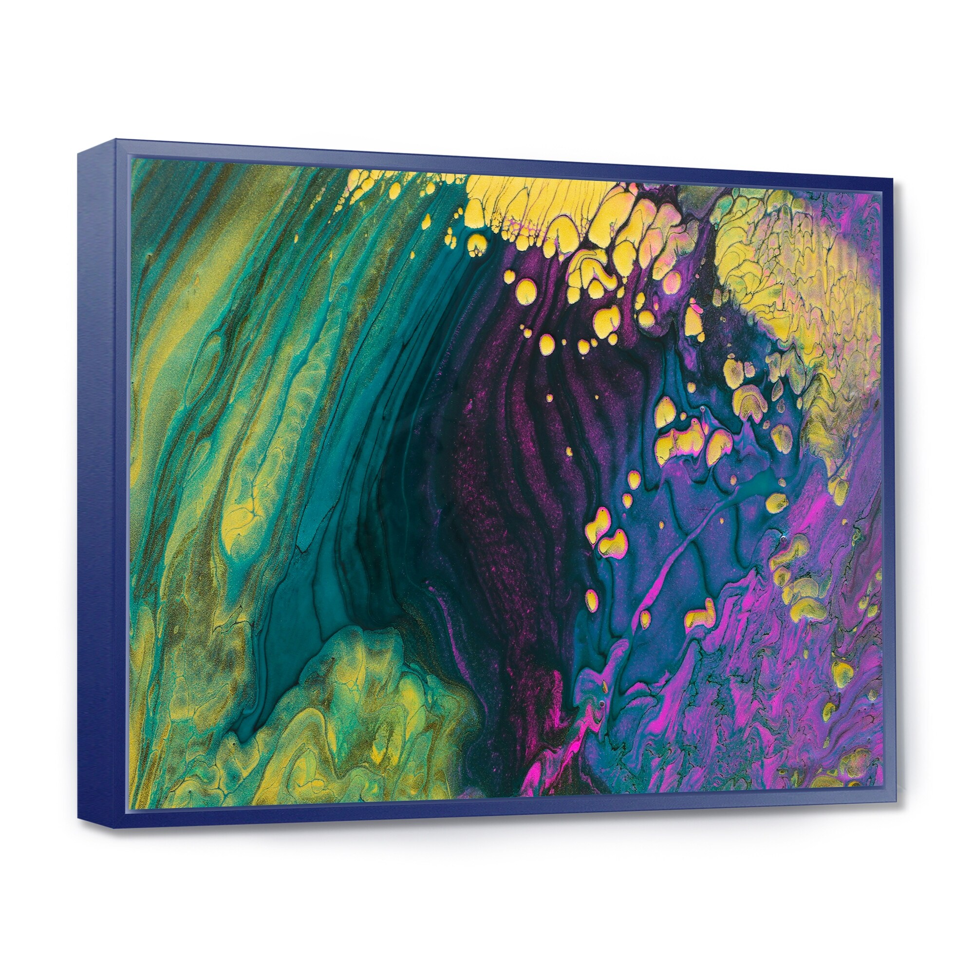 Designart "Abstract Classic Blue And Gold I" Modern Framed Canvas Wall Art Print