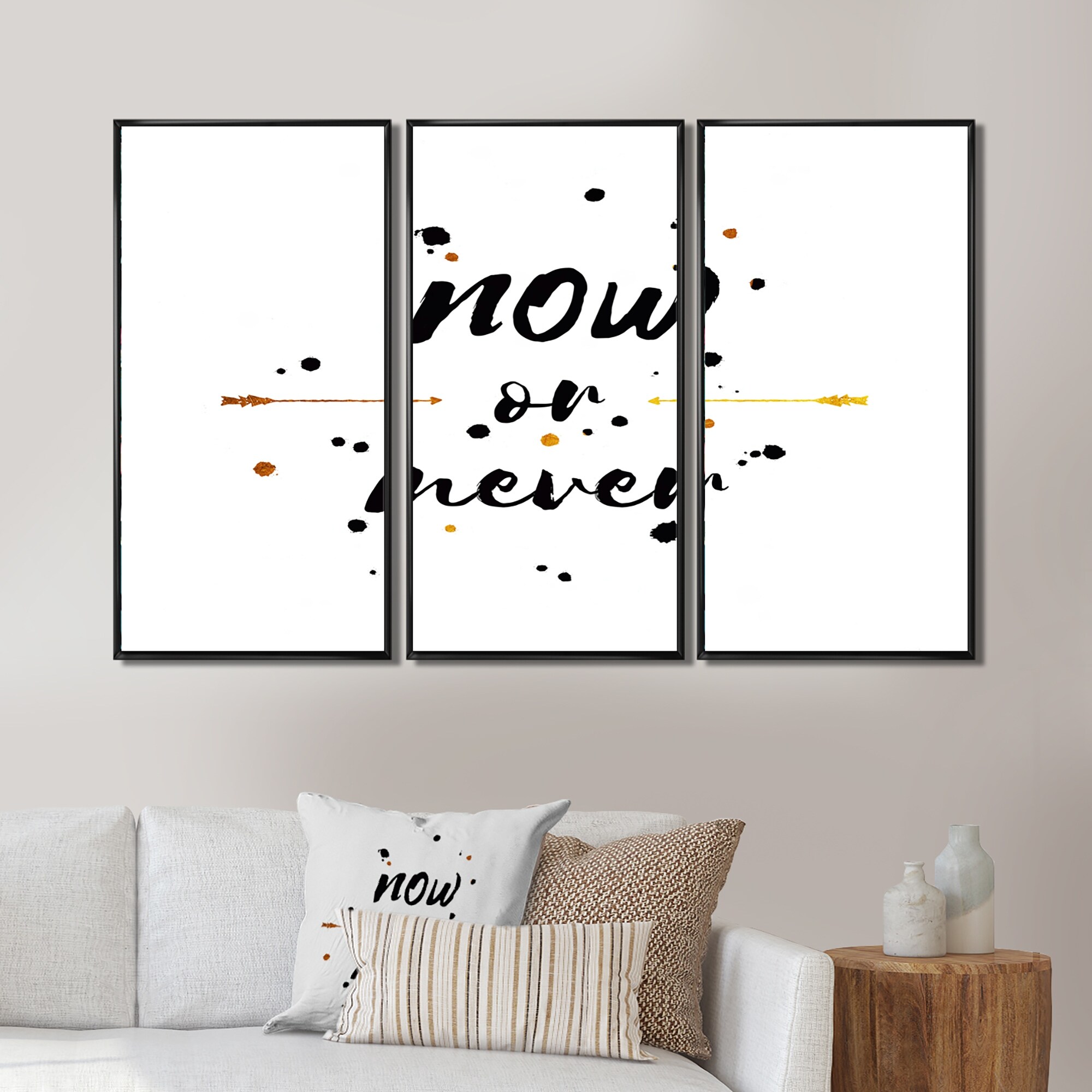 Designart "Now Or Never White And Black" Traditional Framed Canvas Wall Art Print Set of 3 - 4 Colors of Frames