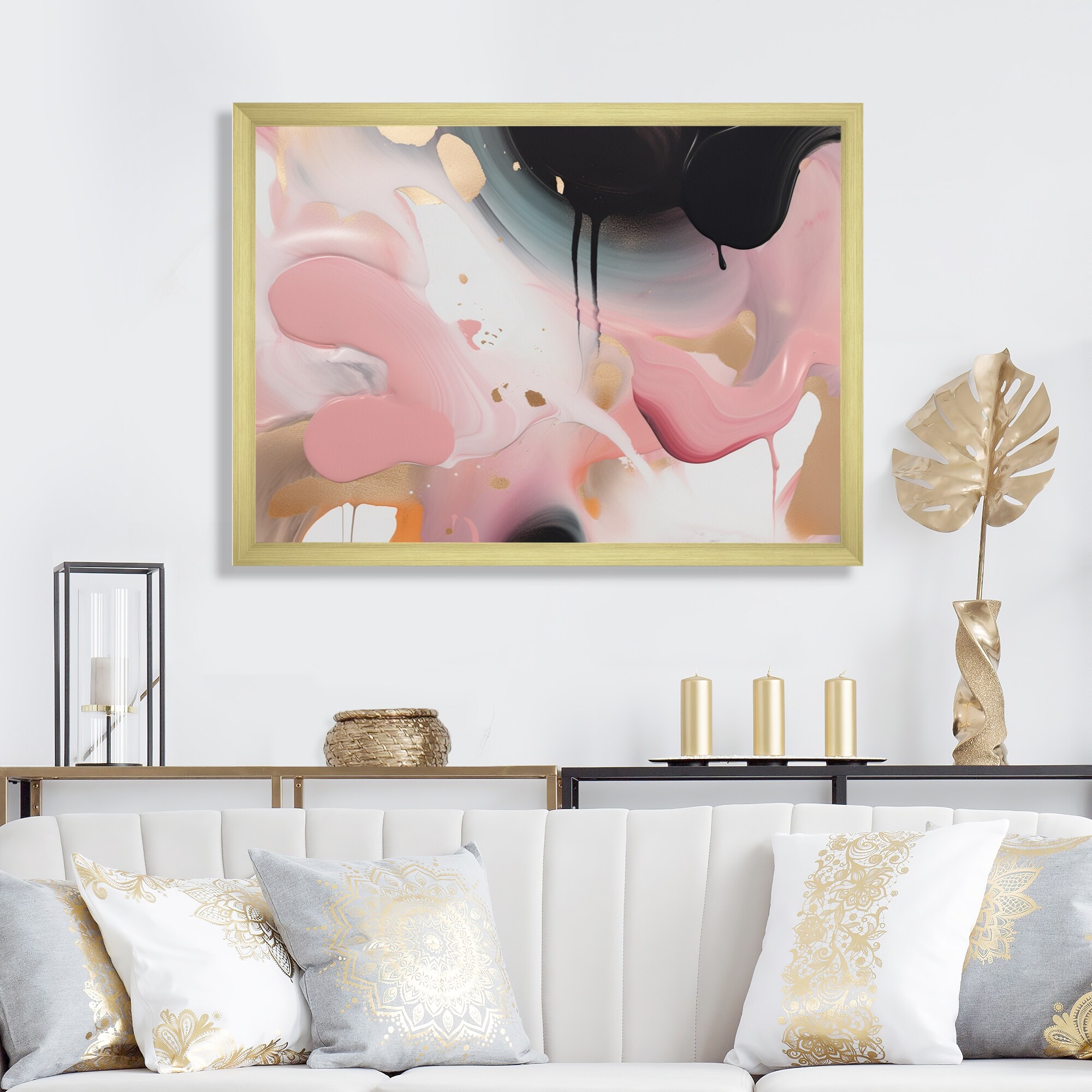 Designart "Pink And Gold Inner Worlds of Marble Ii" Abstract Marble Framed Canvas Art Print