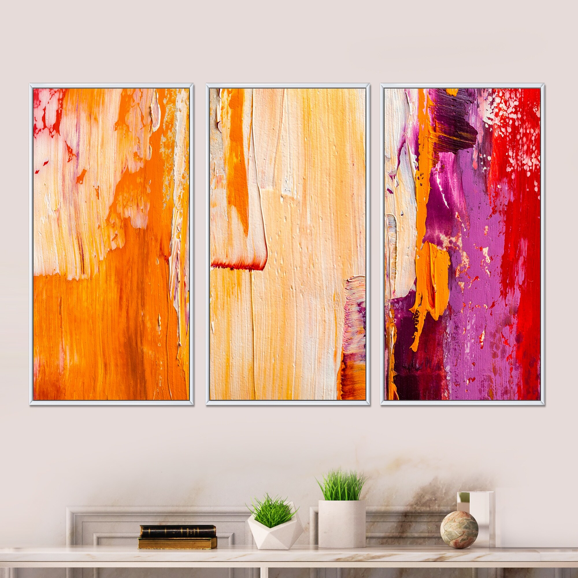 Designart "Abstract Orange Meets Red" Modern Framed Art Print