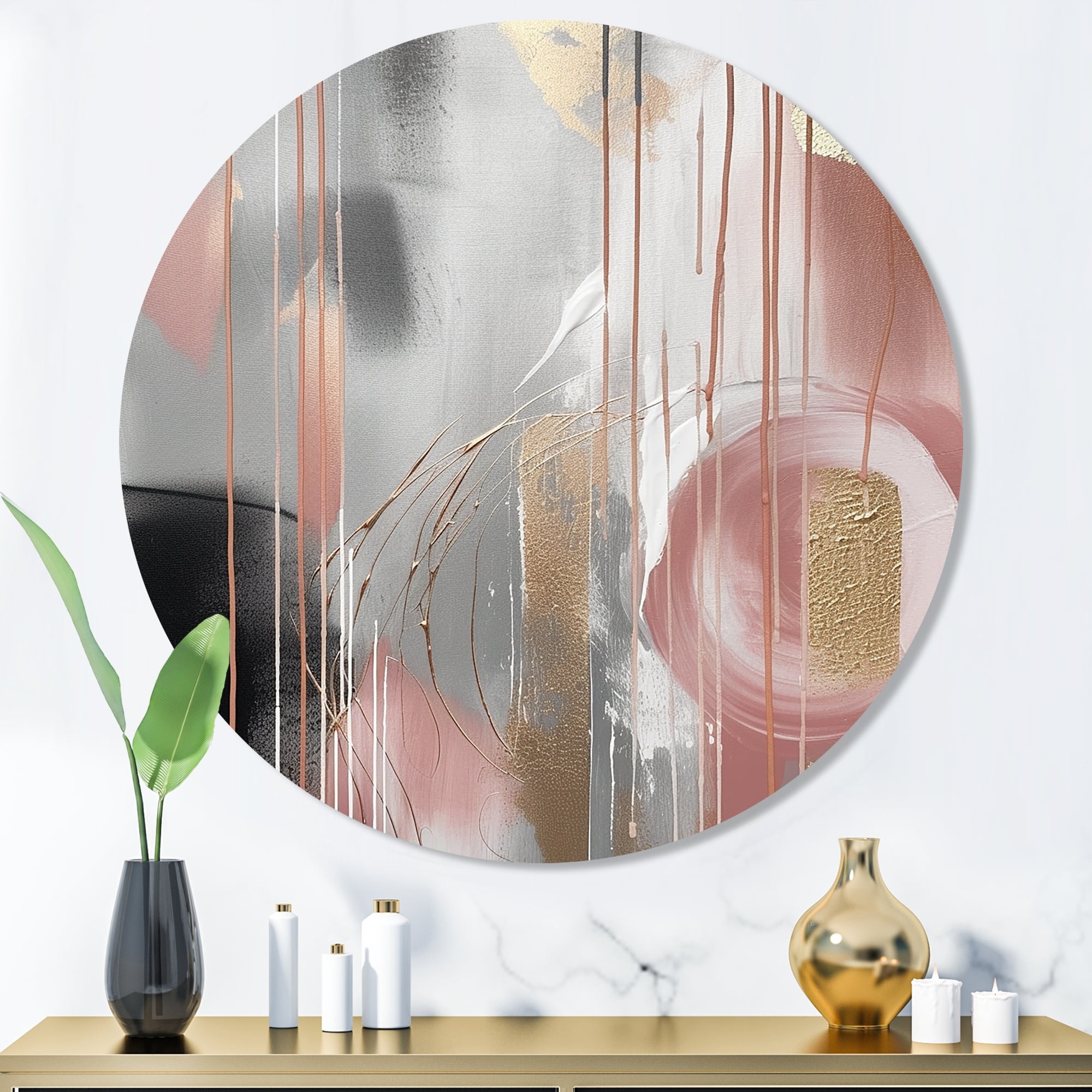 Designart "Pink Gold Circle Complexity" Modern Shapes Transitional Metal Round Wall Art