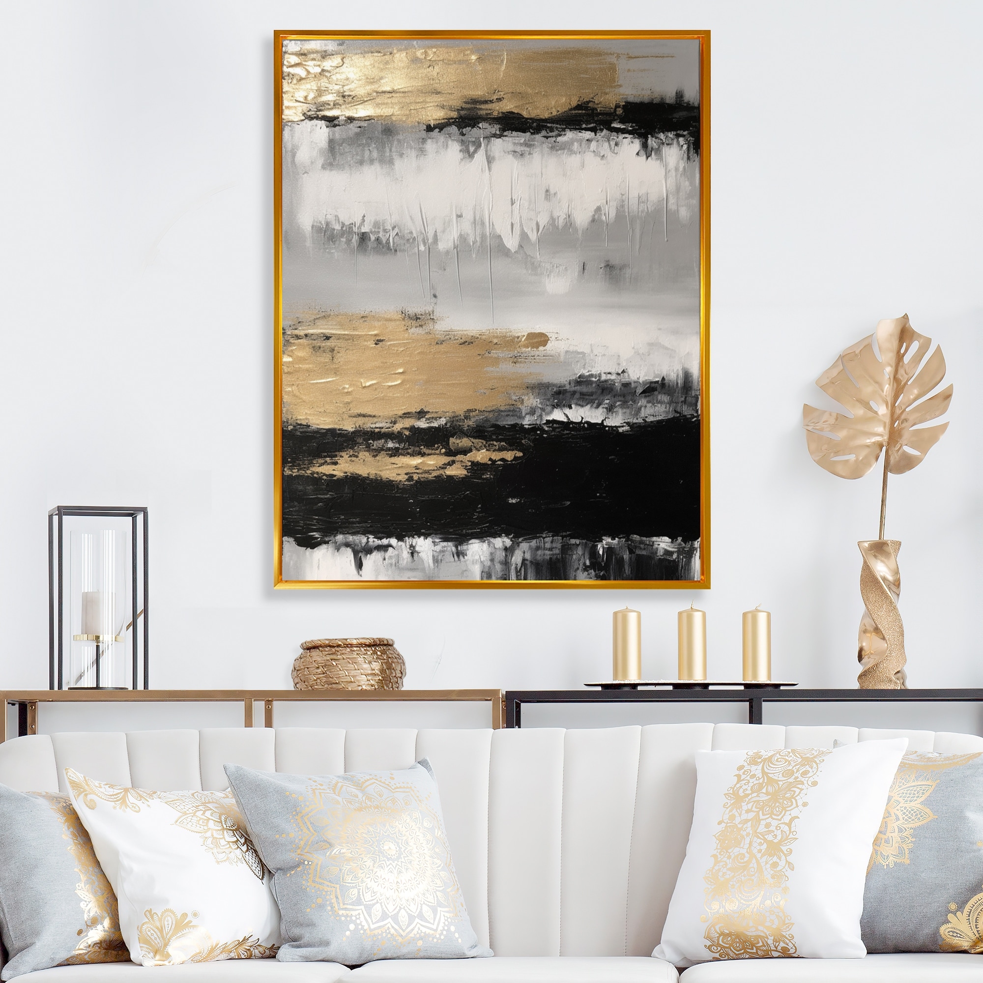 Designart "Minimal Joy in Black And Gold III" Abstract Painting Framed Wall Art Prints
