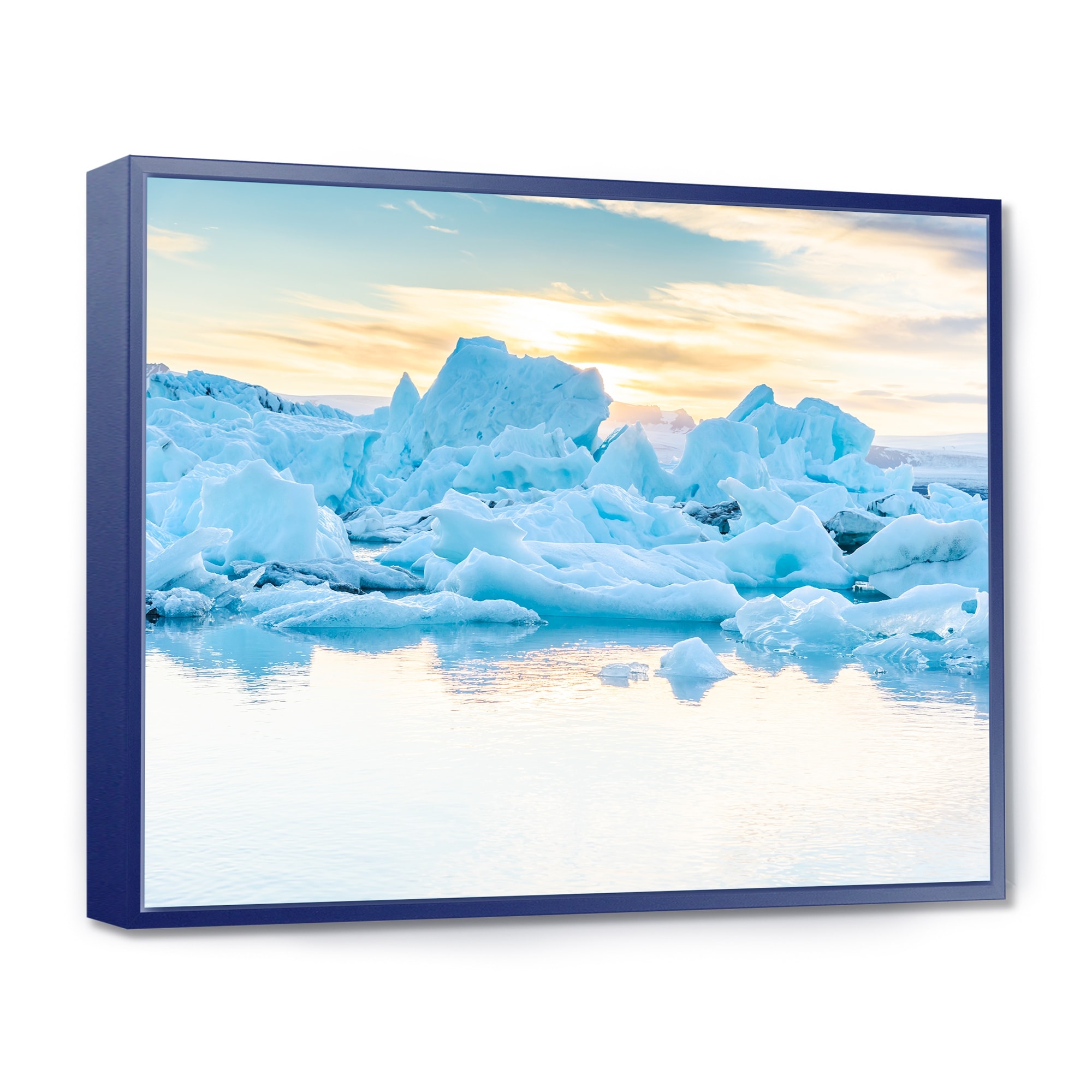 Designart "Icebergs in Glacier Lagoon" Seascape Framed Canvas Art Print