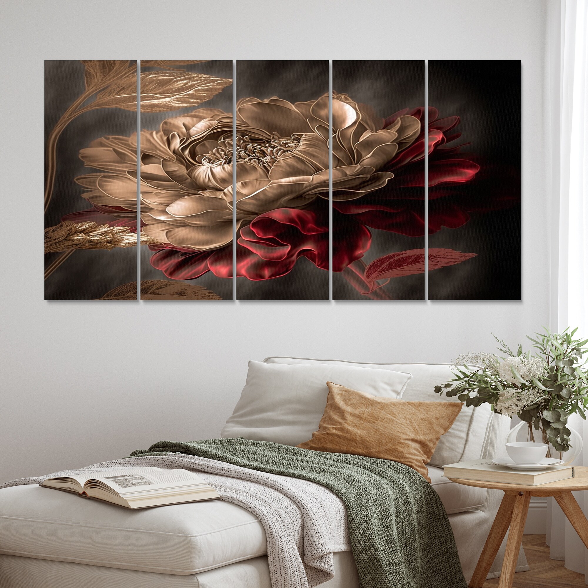 Designart "Gilded Rose Vintage Glam V" Floral Multipanel Canvas Print