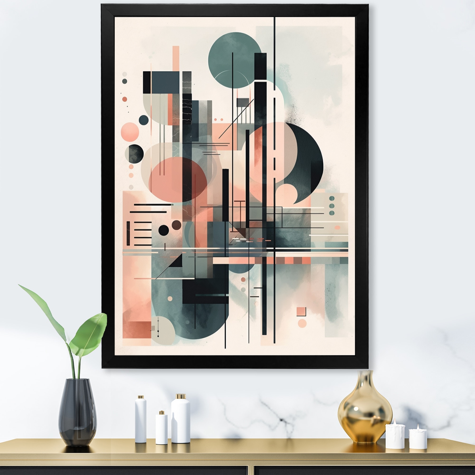 Designart "Abstract Shapes And Lines Iv" Abstract Marble Framed Wall Art for Living Room