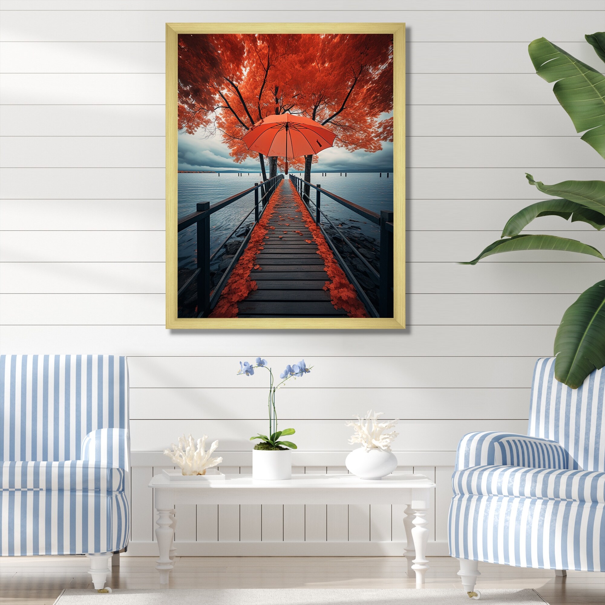 Designart "Pier Piers Embrace II" Coastal Pier Framed Wall Art Living Room