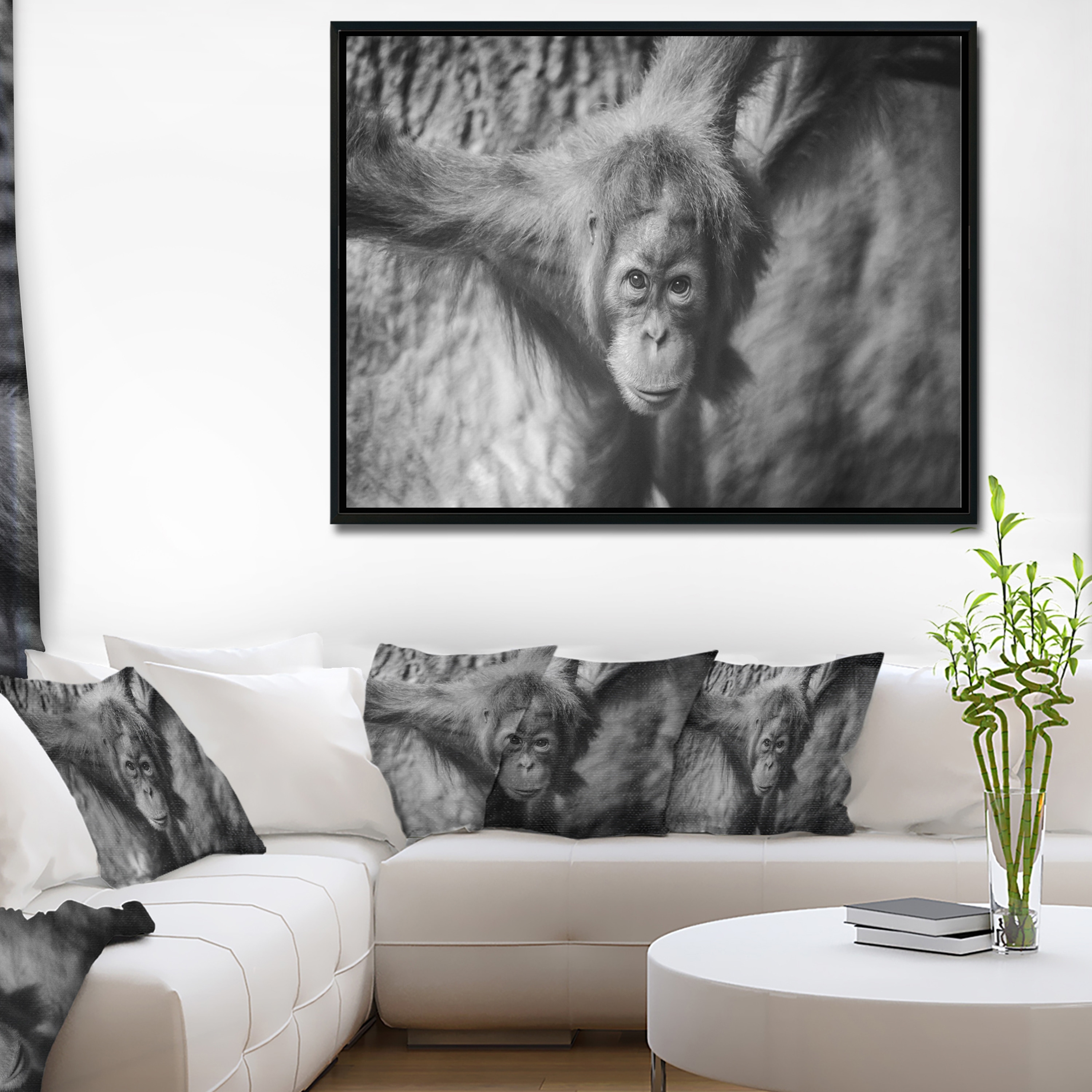 Designart "Young Orangutan Black" Abstract Framed Canvas Art Print