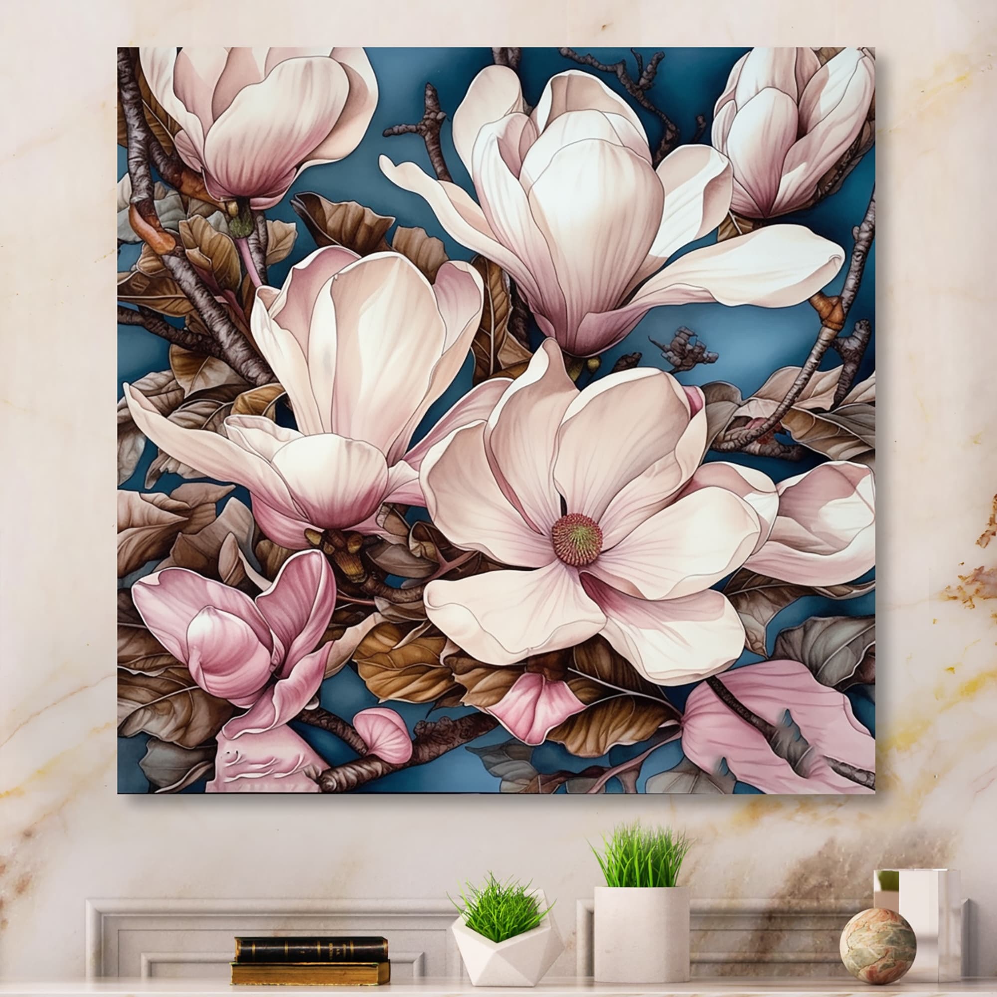 Designart "Pink Magnificent Magnolias III" Floral Magnolias Metal Wall Art
