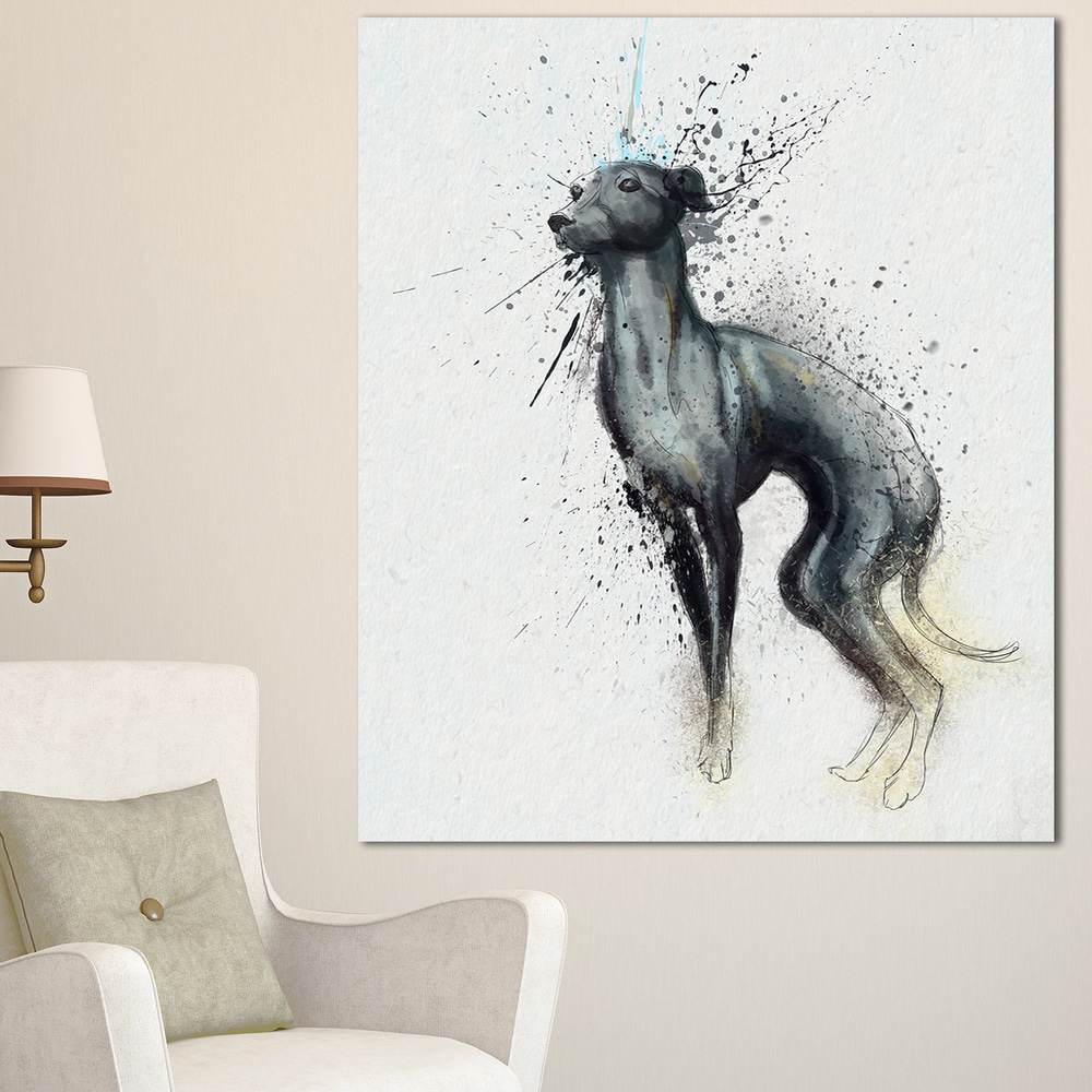 Designart "Black Dog Watercolor with Splashes" Large Animal Canvas Artwork Print