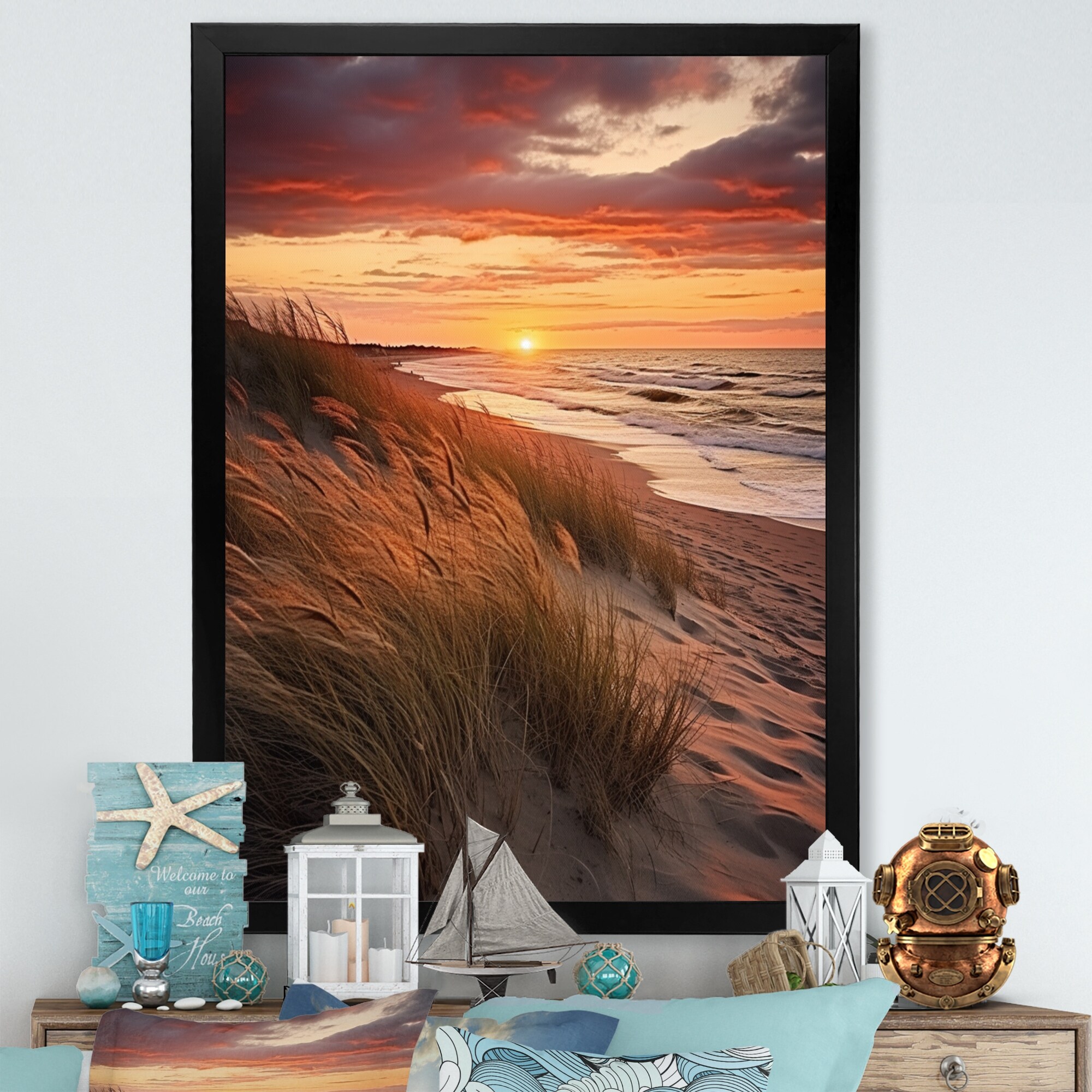 Designart "Beach Photo Golden Sands XXIV" Beach Framed Canvas Print