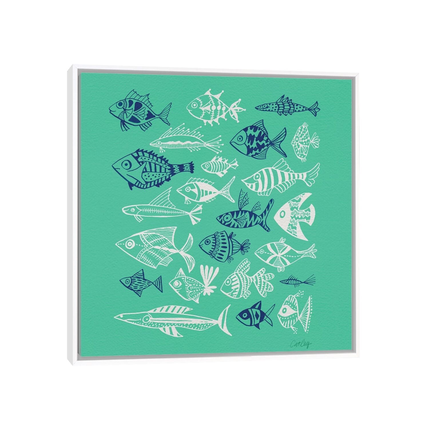 iCanvas "Fish Inkings Green Navy White" by Cat Coquillette Framed Canvas Print