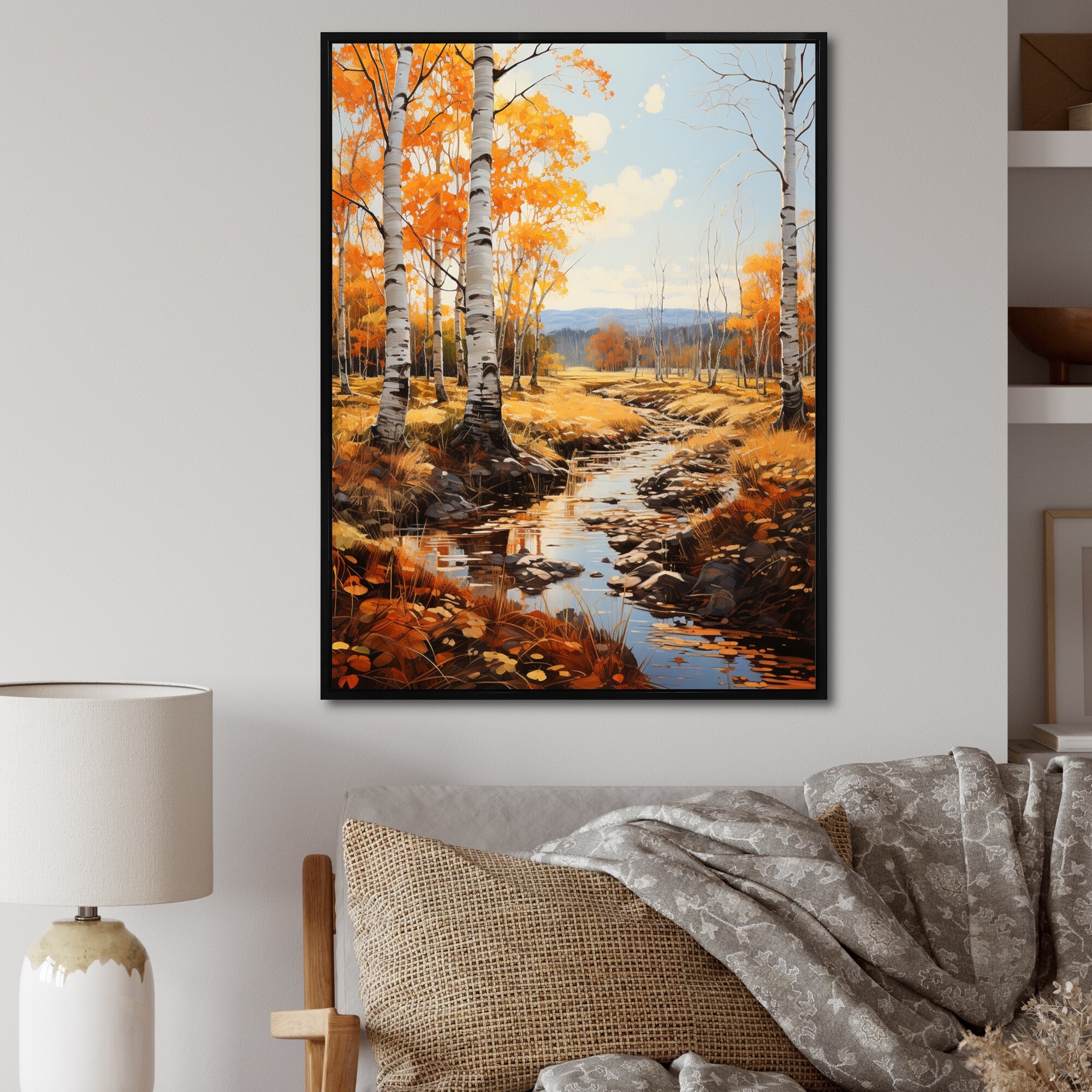 Designart "Birch Woods Autumn Sonata II" Tree Birch Framed Wall Decor