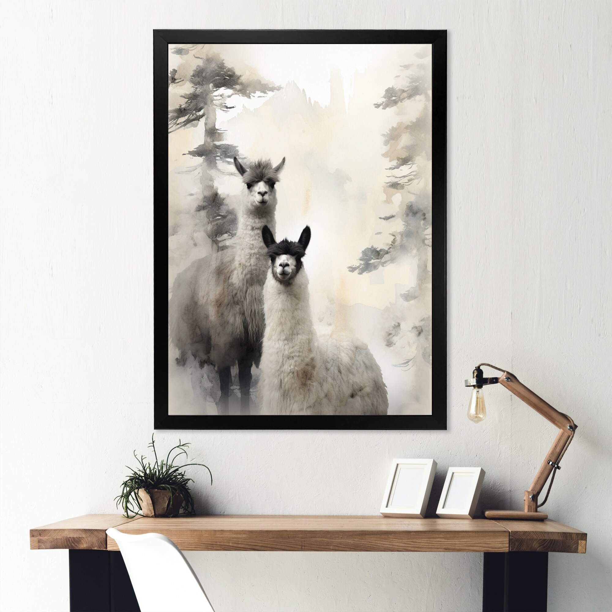 Designart "Asian Art Huacayass Sumi II" Llama Framed Canvas Prints