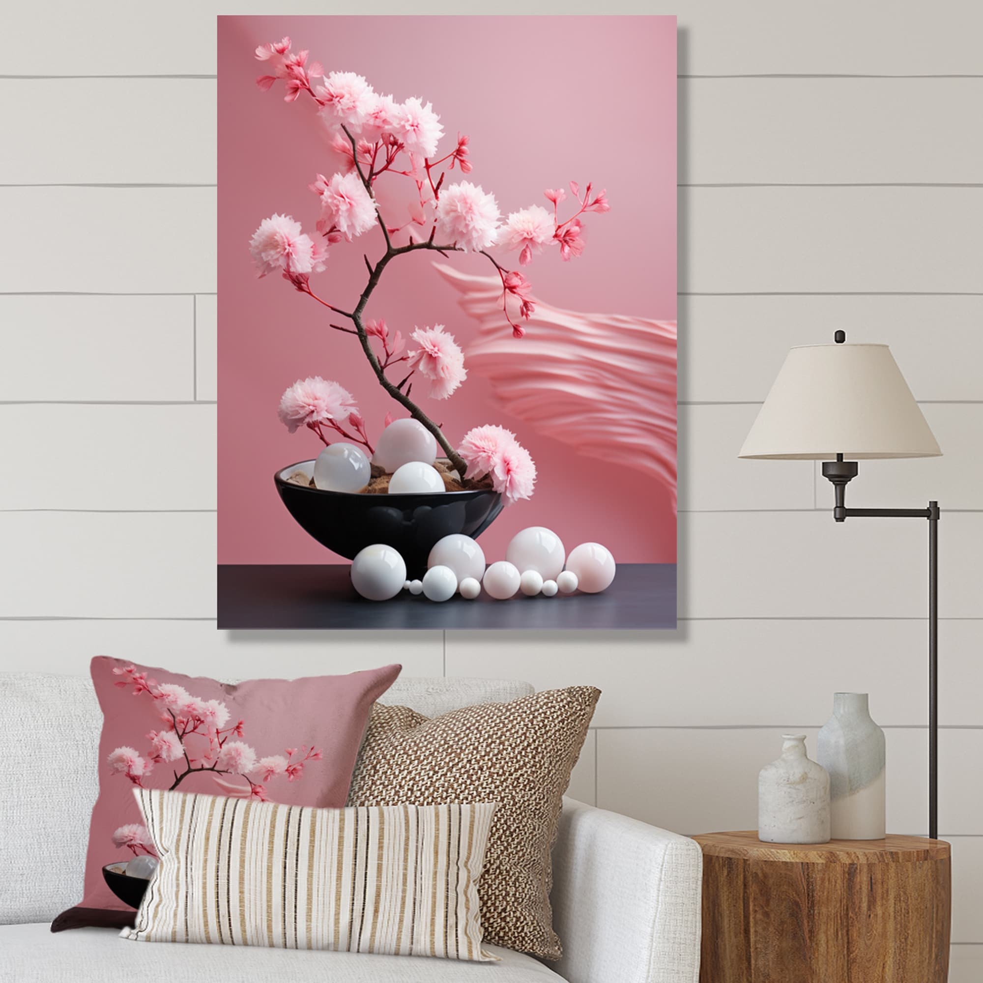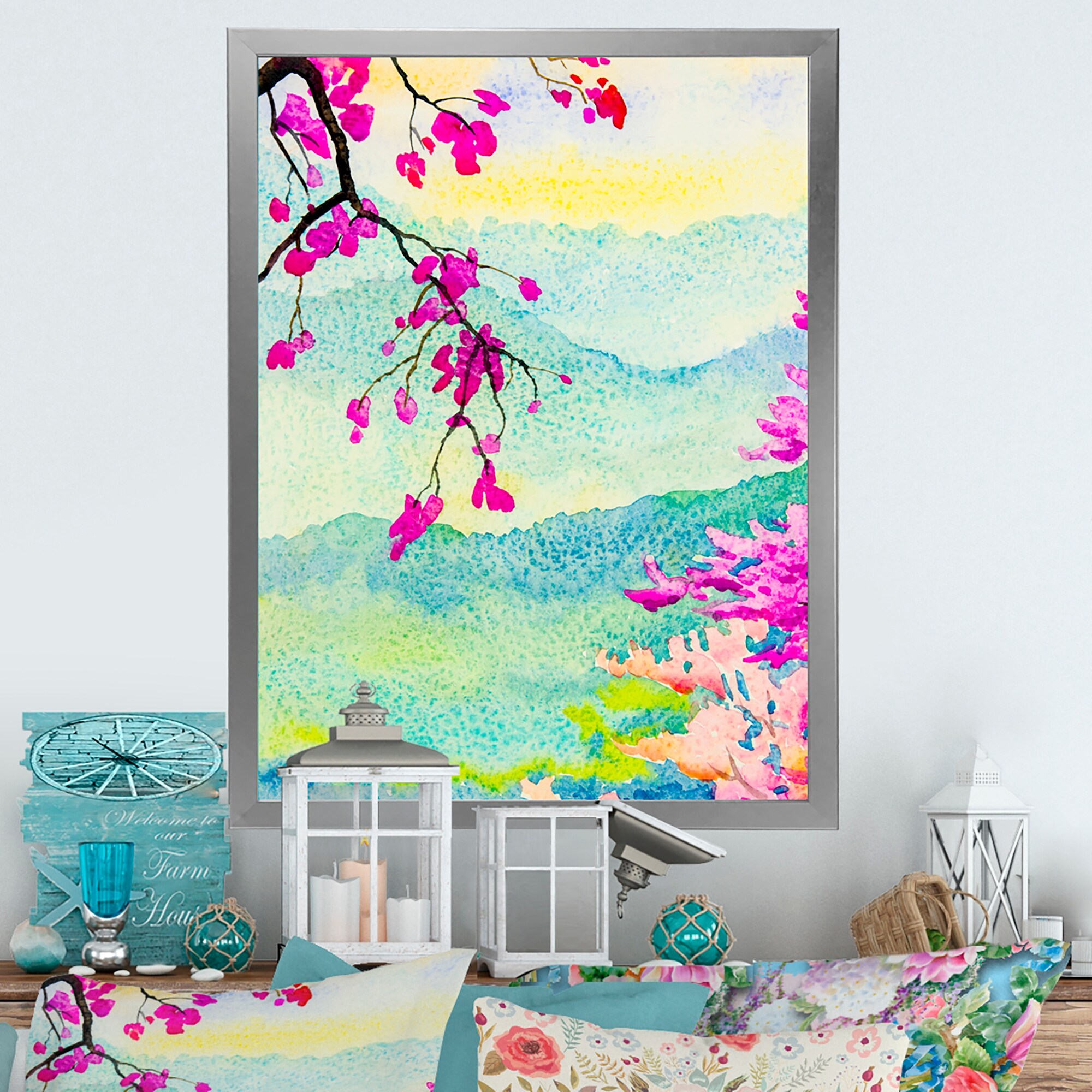 Designart "Colorfull Blooming Asian Pink Tree II" Traditional Framed Wall Decor