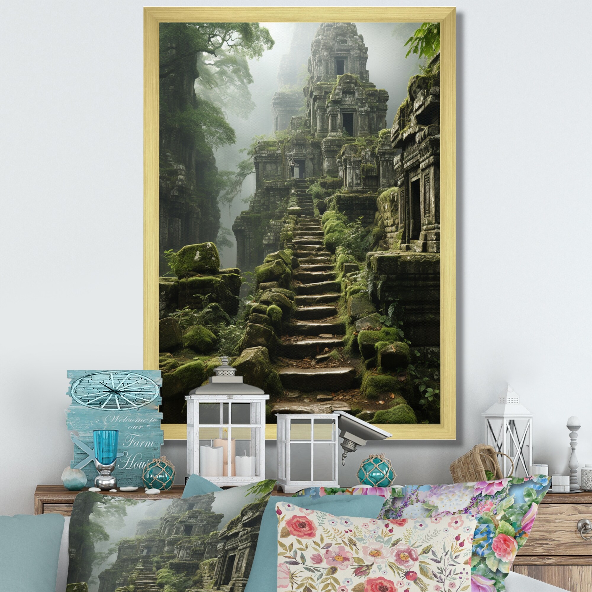 Designart "Asian Art Journey to Angkor V" Asian Art Framed Wall Art Prints