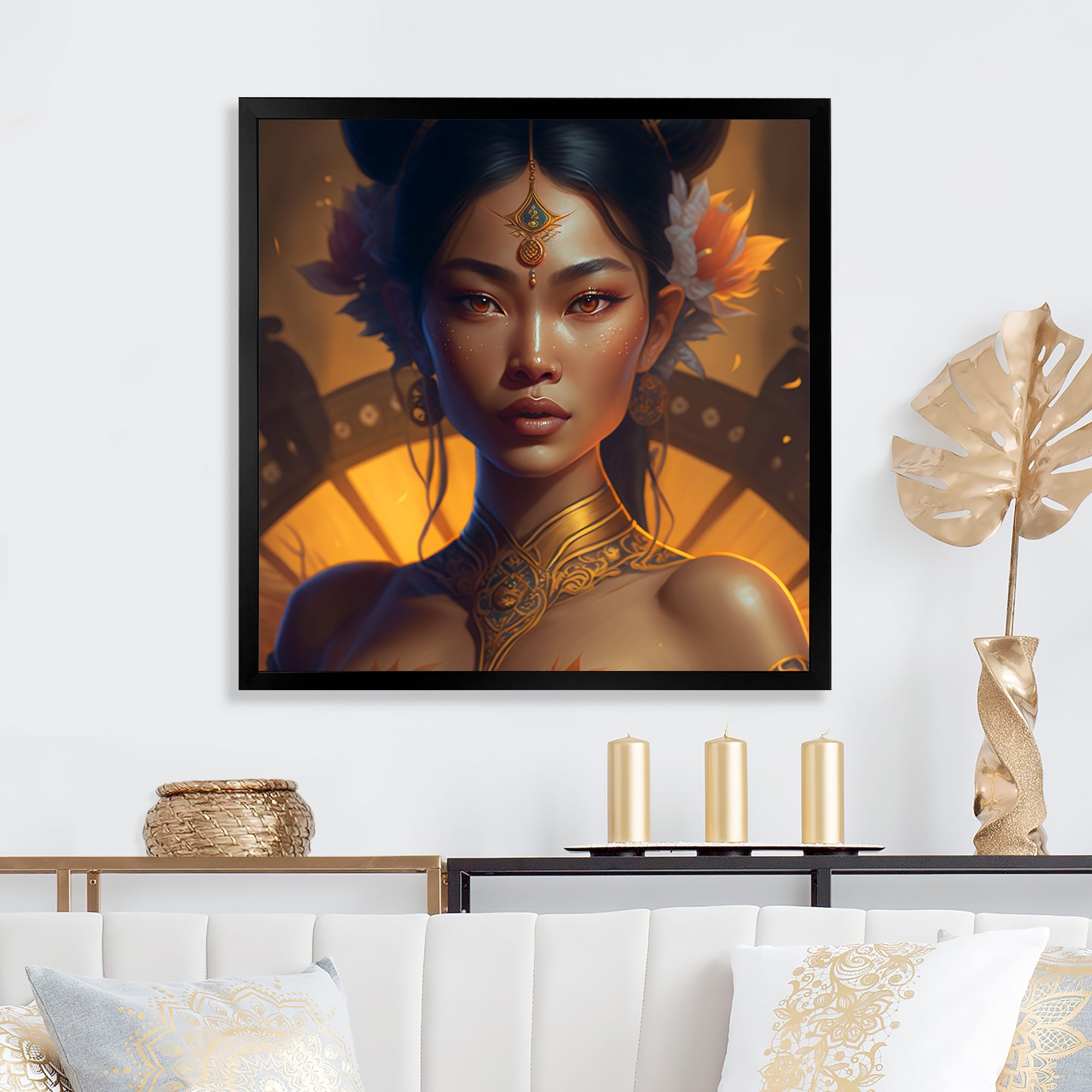 Designart "Asian Royalty" Fashion Woman Framed Canvas Print