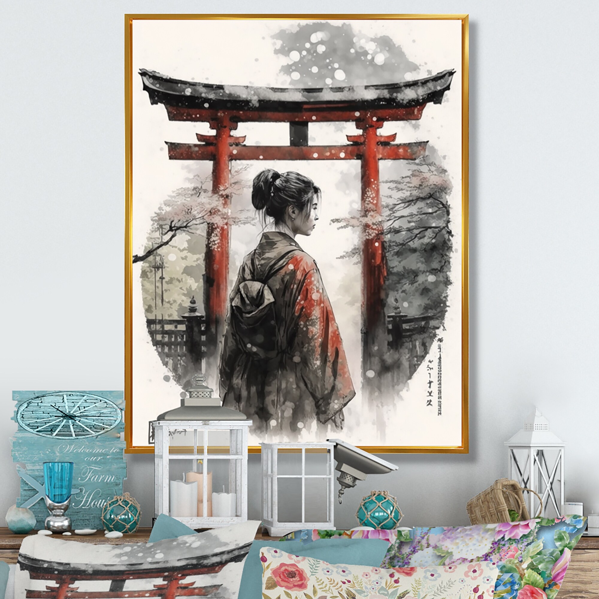 Designart "Asian Female II" Japon Landscape Framed Canvas Art Print