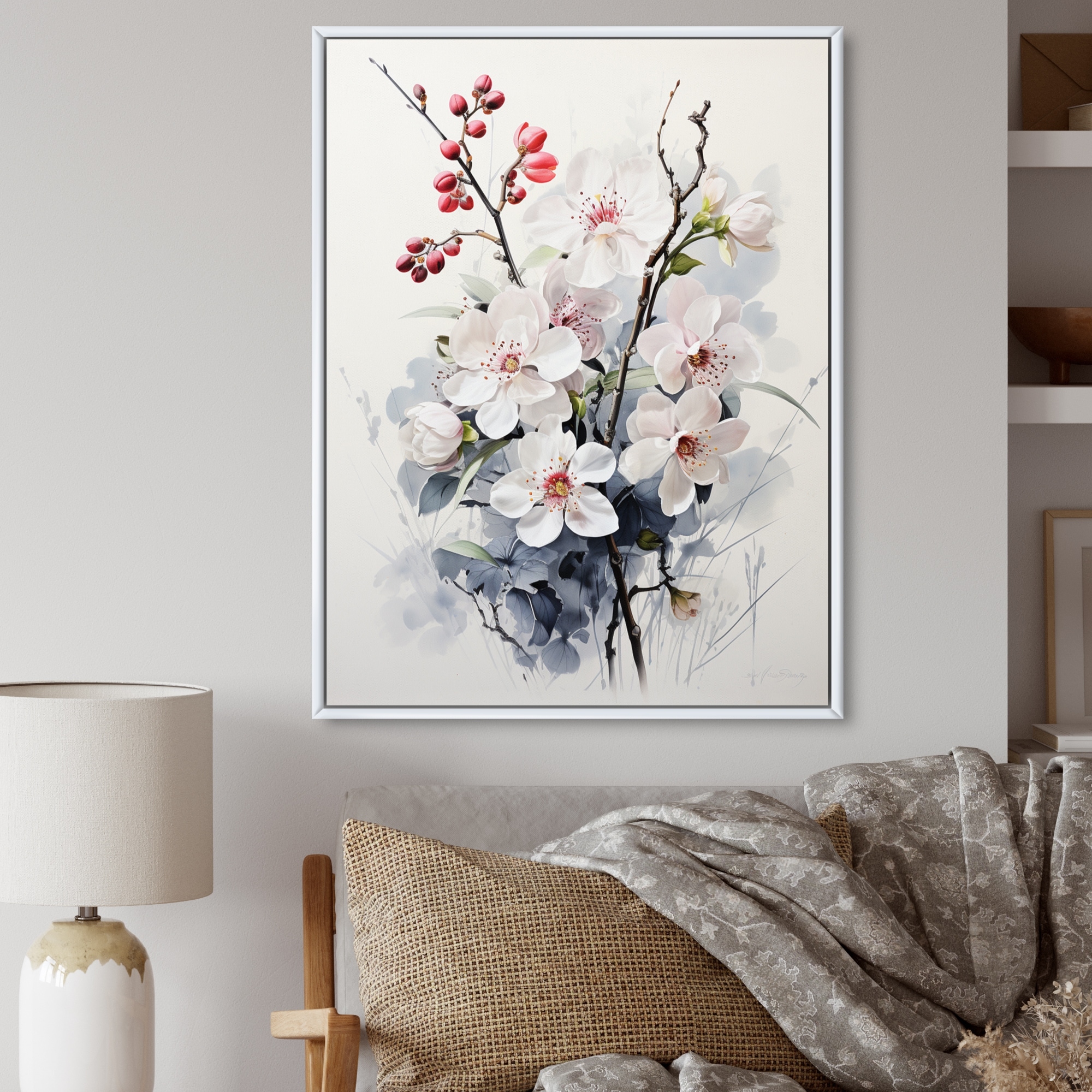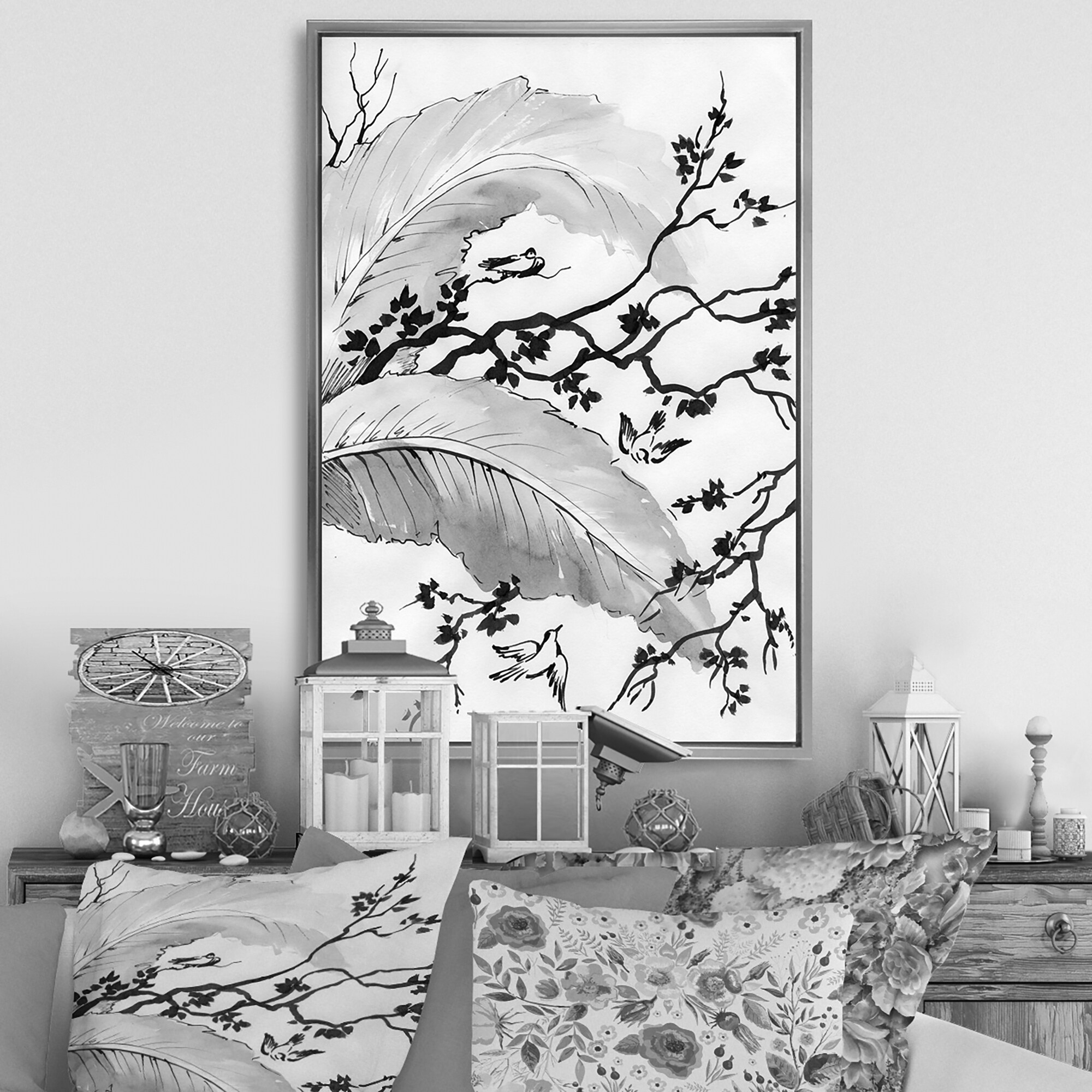 Designart "Asian Sketch of Nature Birds" Traditional Framed Canvas Wall Art