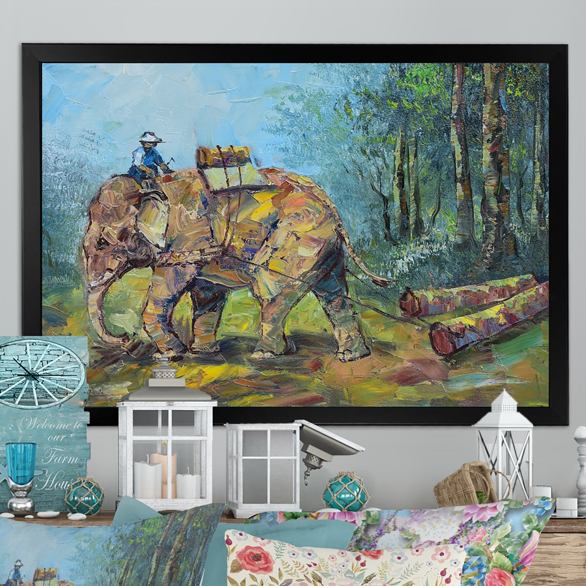 Designart "Vintage Asian Elephant Wildside Life" Vintage Framed artwork