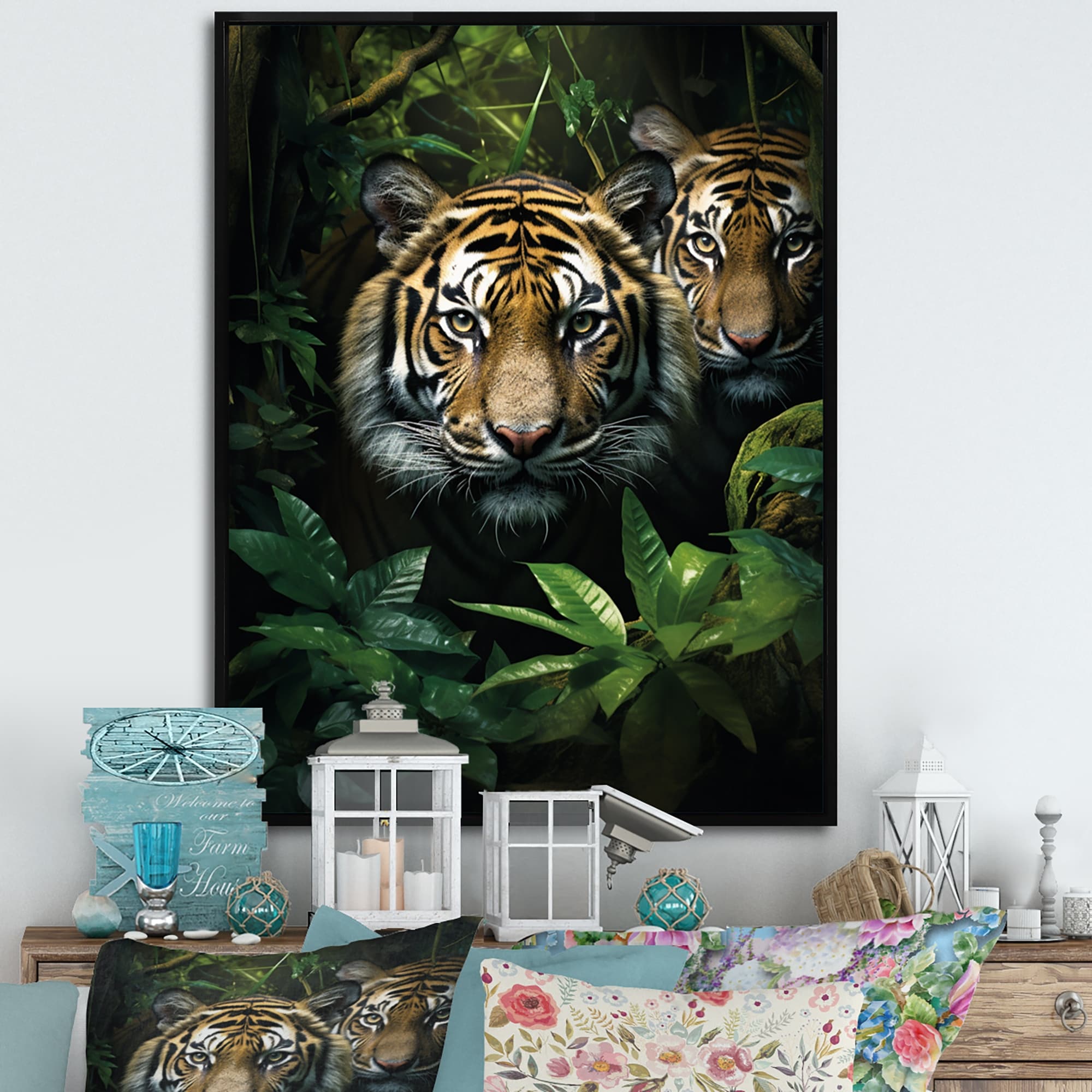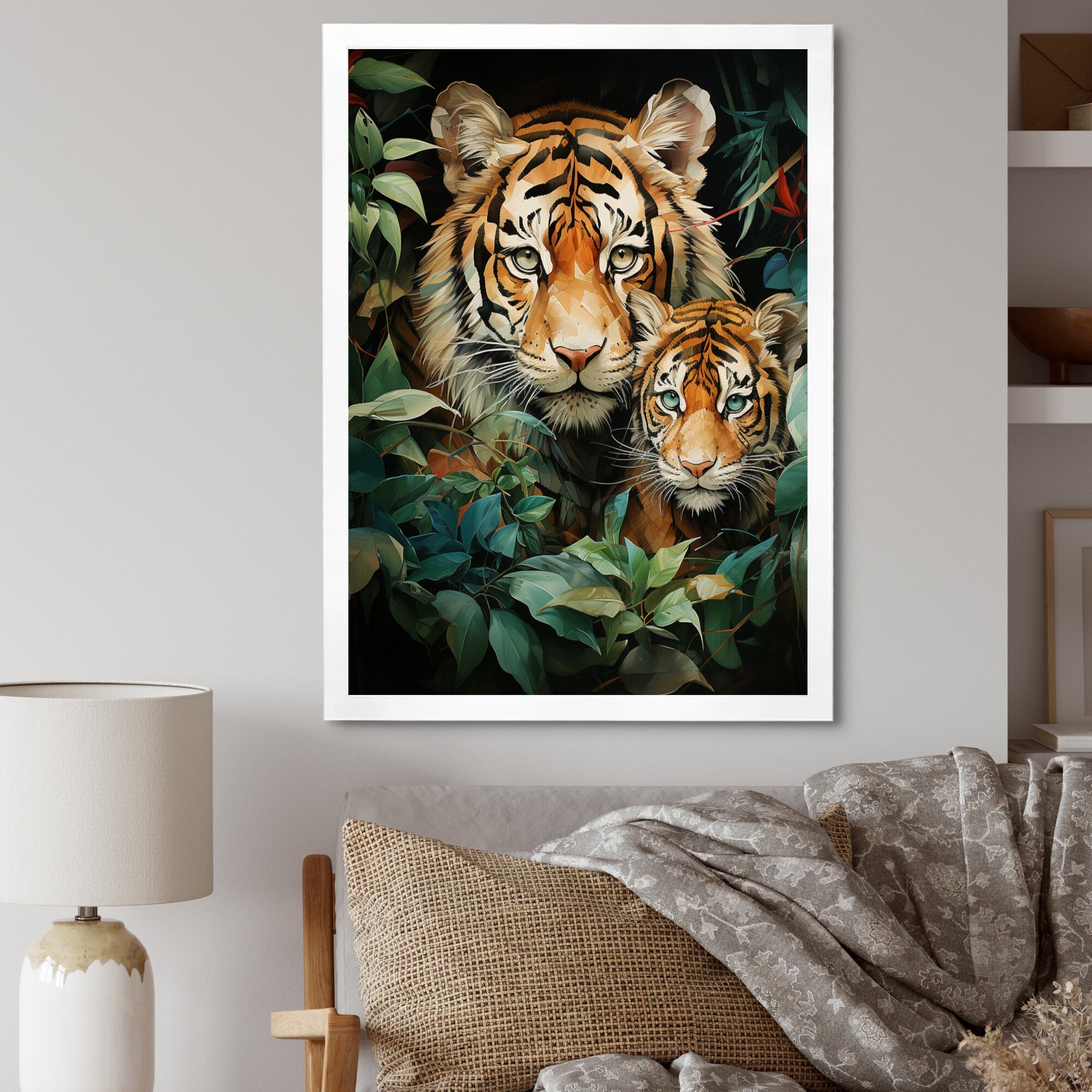 Designart "Asian Art Tigers in Jungle I" Asian Art Framed Wall Art Living Room