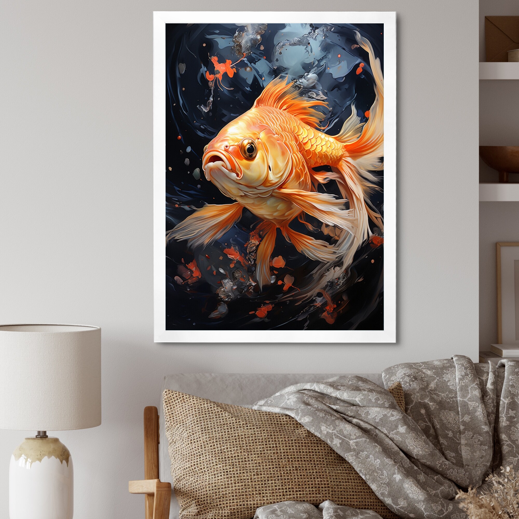 Designart "Asian Koi Fish Painting" Traditional Framed Wall Decor