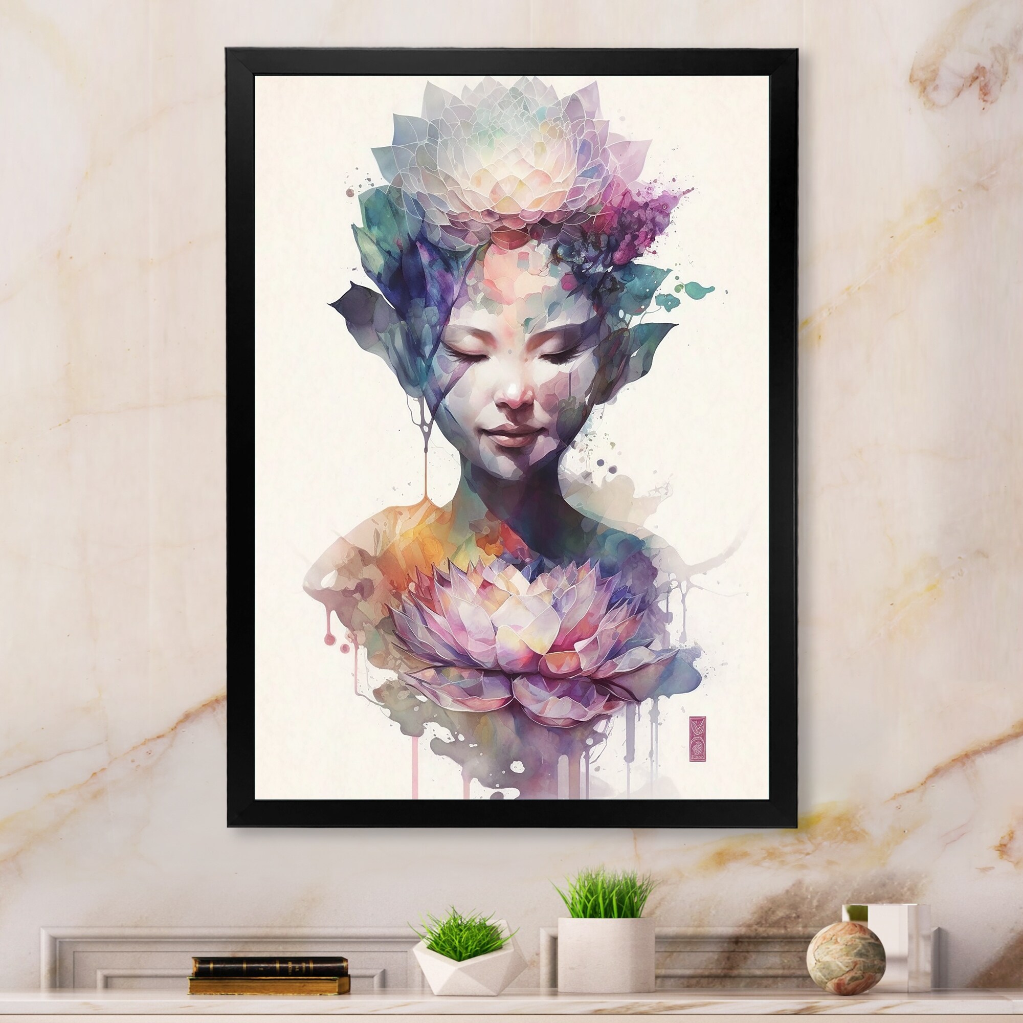 Designart "Elegant Asian Lotus Goddess I" Woman Goddess Framed Canvas Art Print
