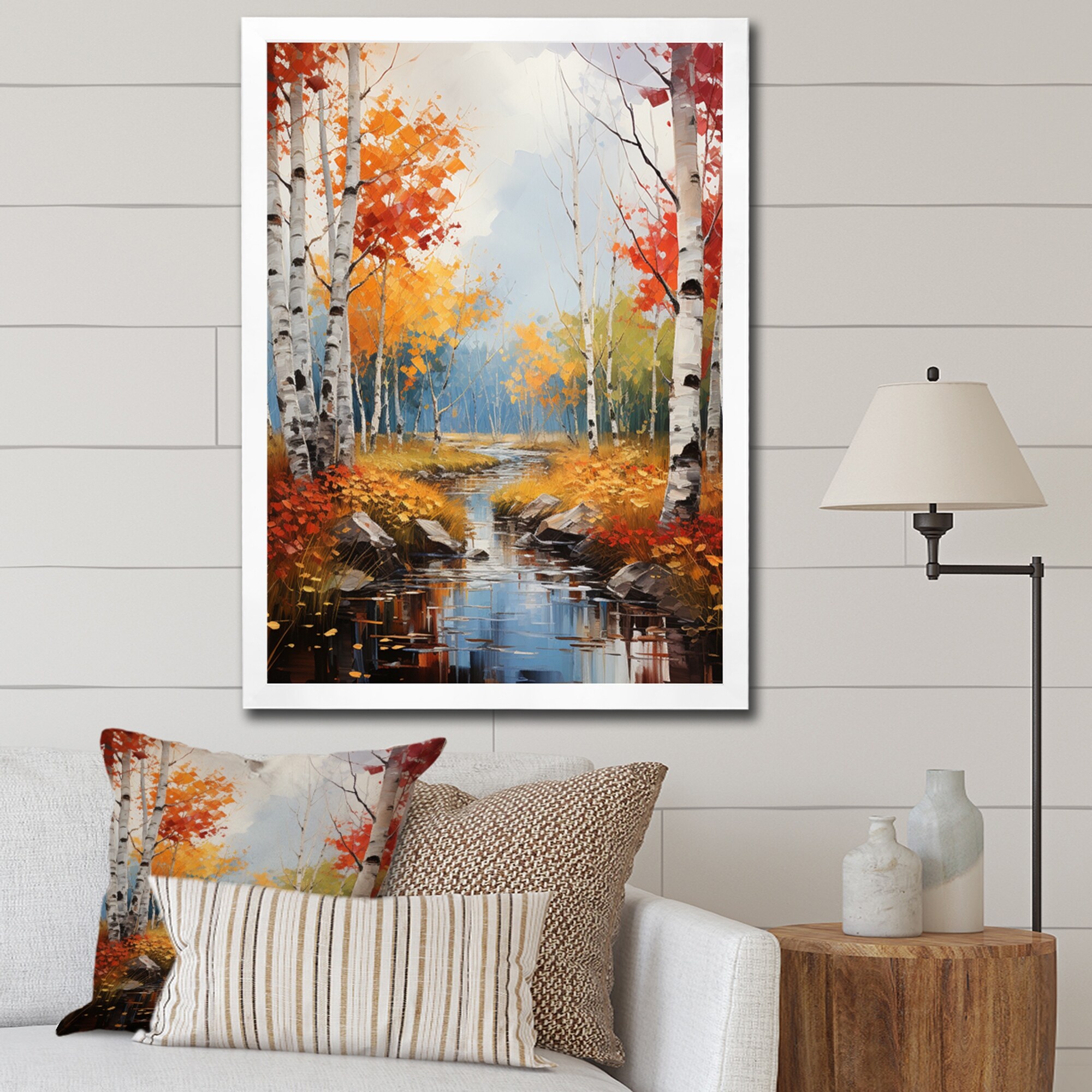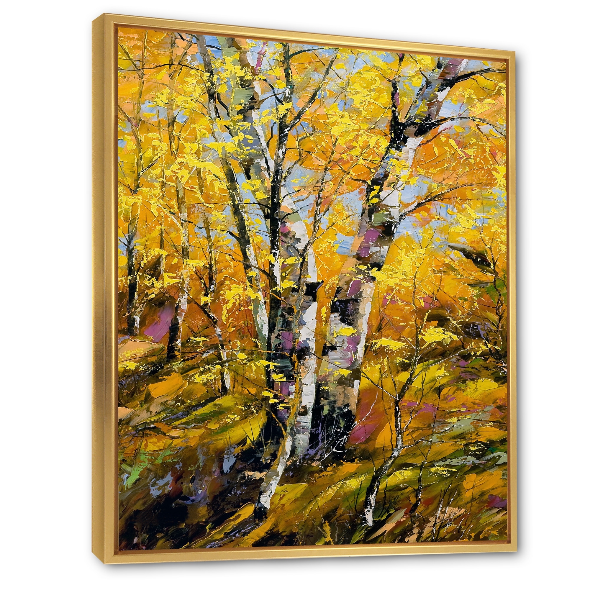 Designart "Birch Woods Autumn Harmony V" Tree Birch Framed Canvas Art Print