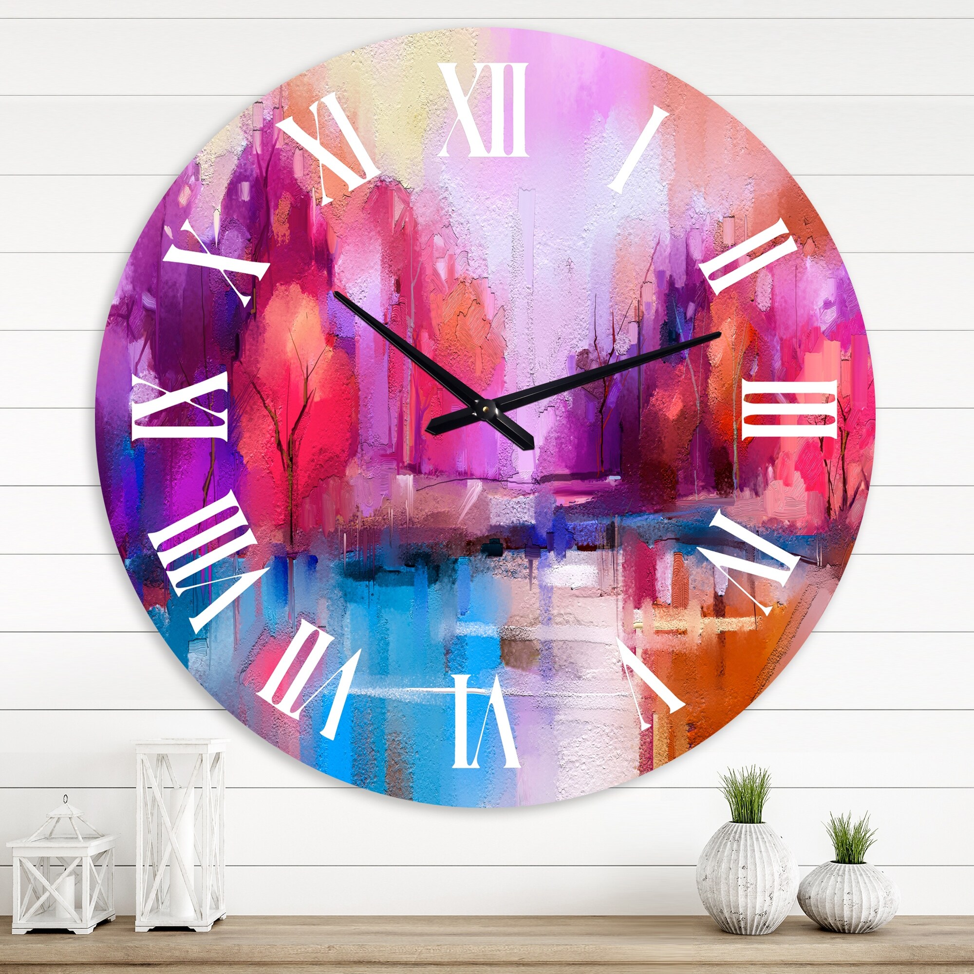 Designart 'Colorful Autumn Forest By Lakeside' Modern wall clock