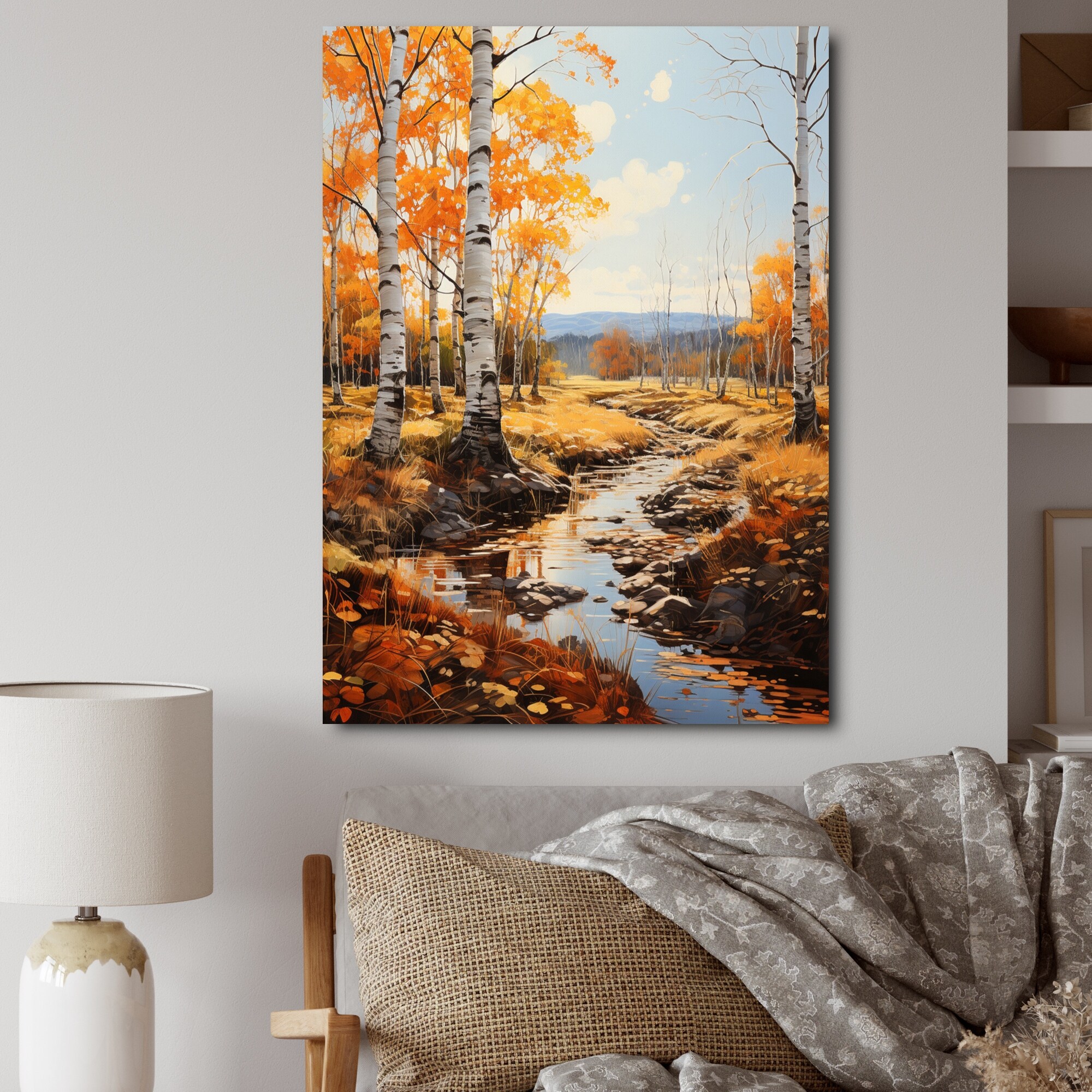 Designart "Birch Woods Autumn Sonata II" Tree Birch Canvas Art Print